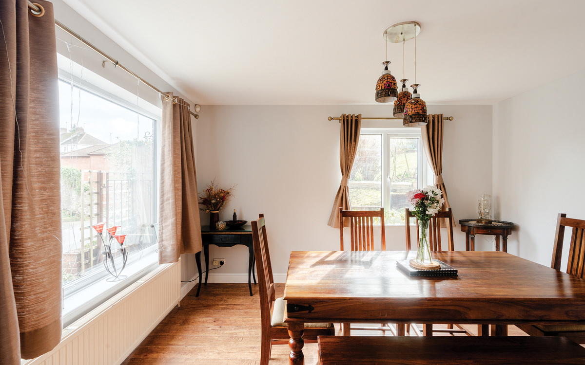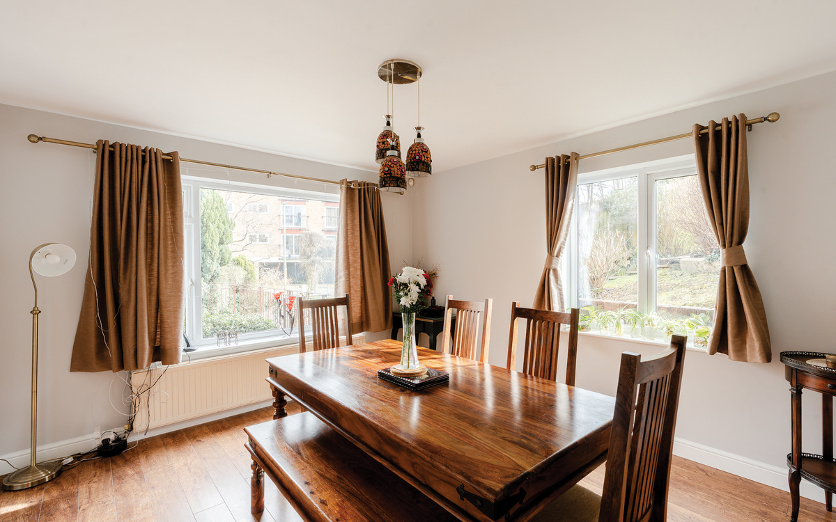 The dining/family room is dual aspect and is directly opposite the kitchen.