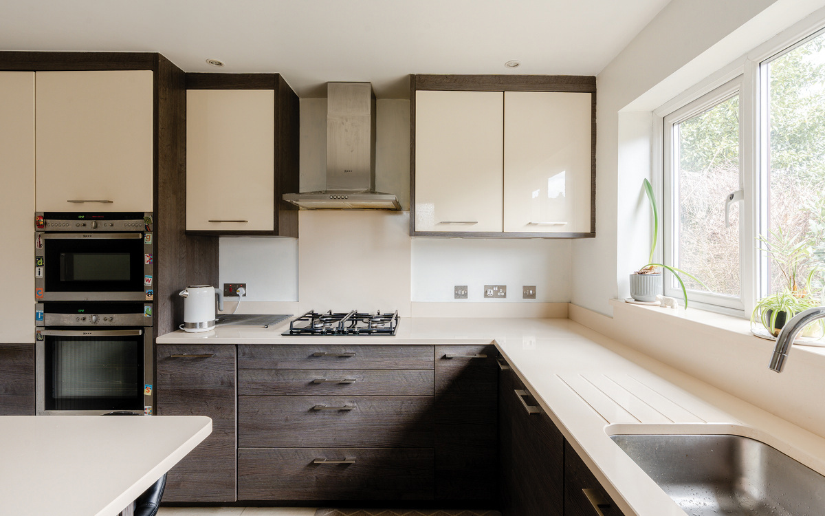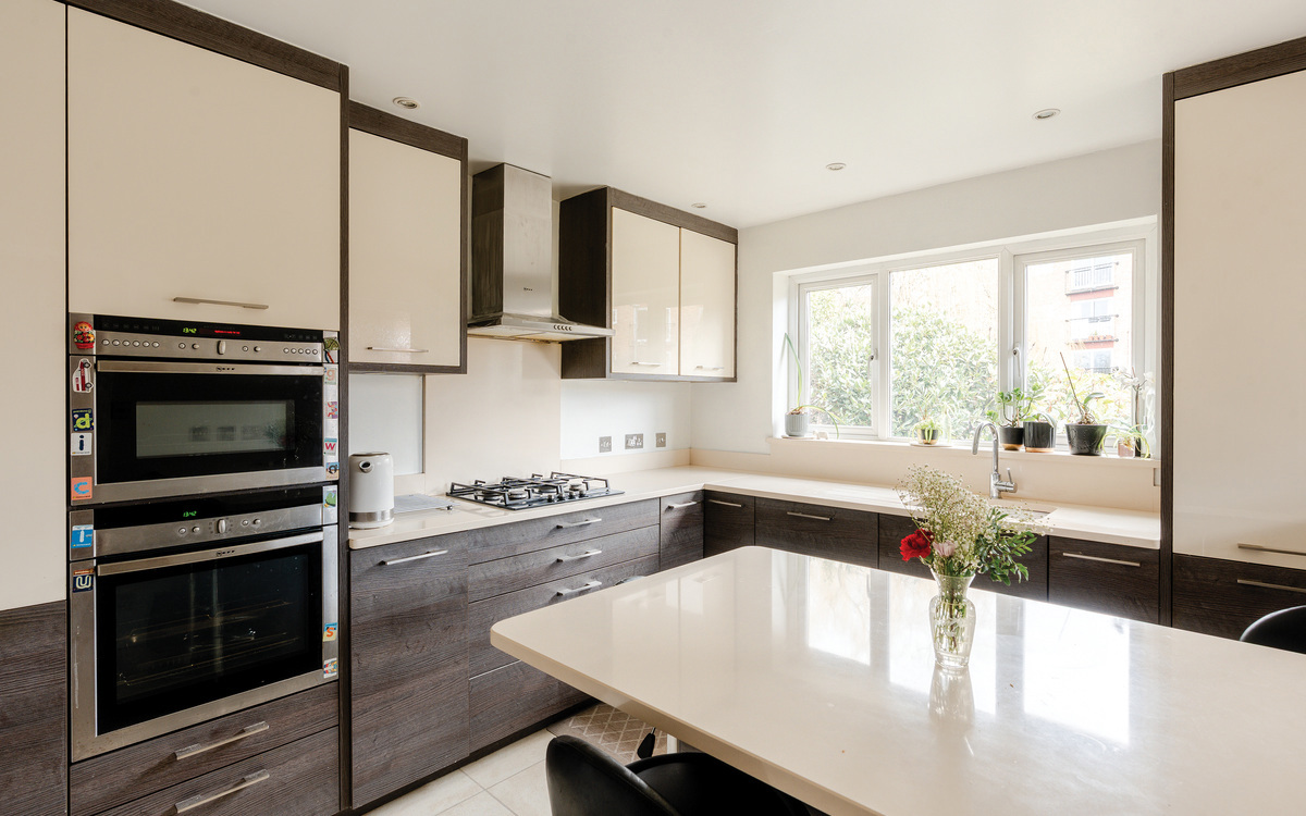 Like the dining room, the kitchen is also dual aspect and due t has a feel of quality to its thanks to its solid worksurfaces and integrated appliances. There is also a breakfast bar incorporated into the design.