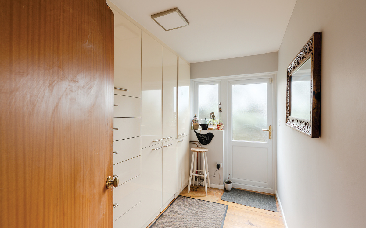 The utility room has been designed to make the most of the space with floor to ceiling units all along one wall. This provides excellent storage and the combination boiler is also housed in here. A door opens to the garden.