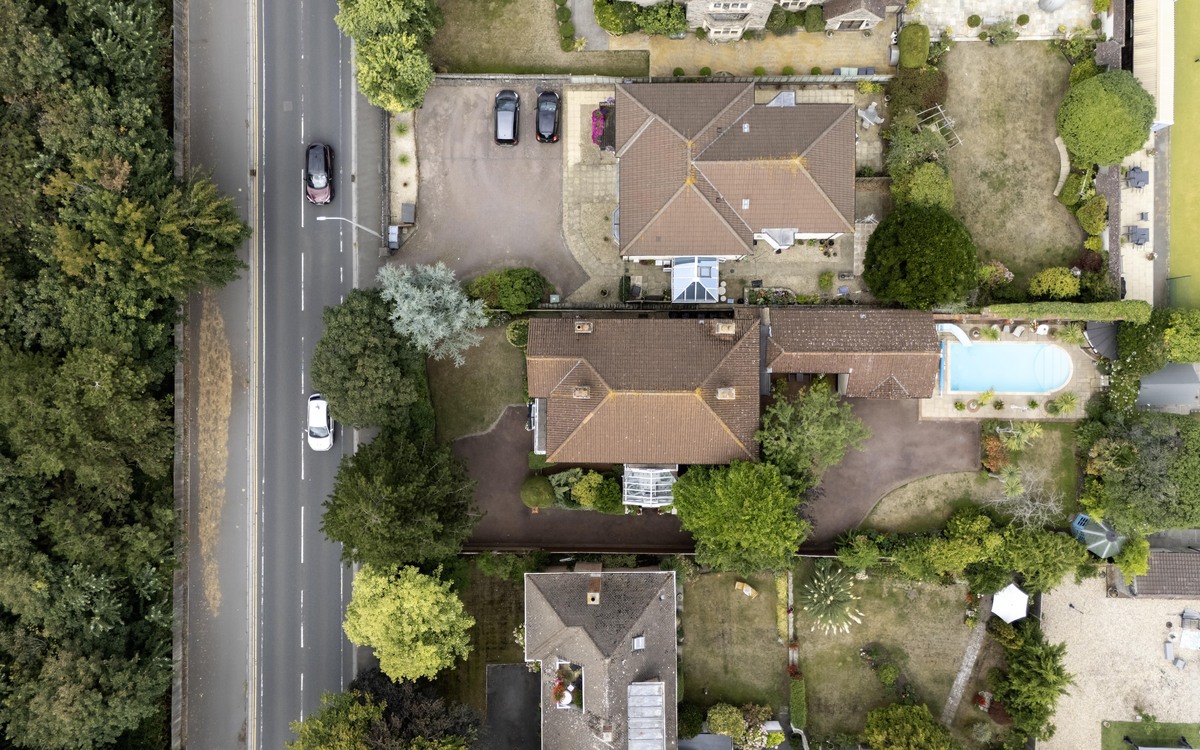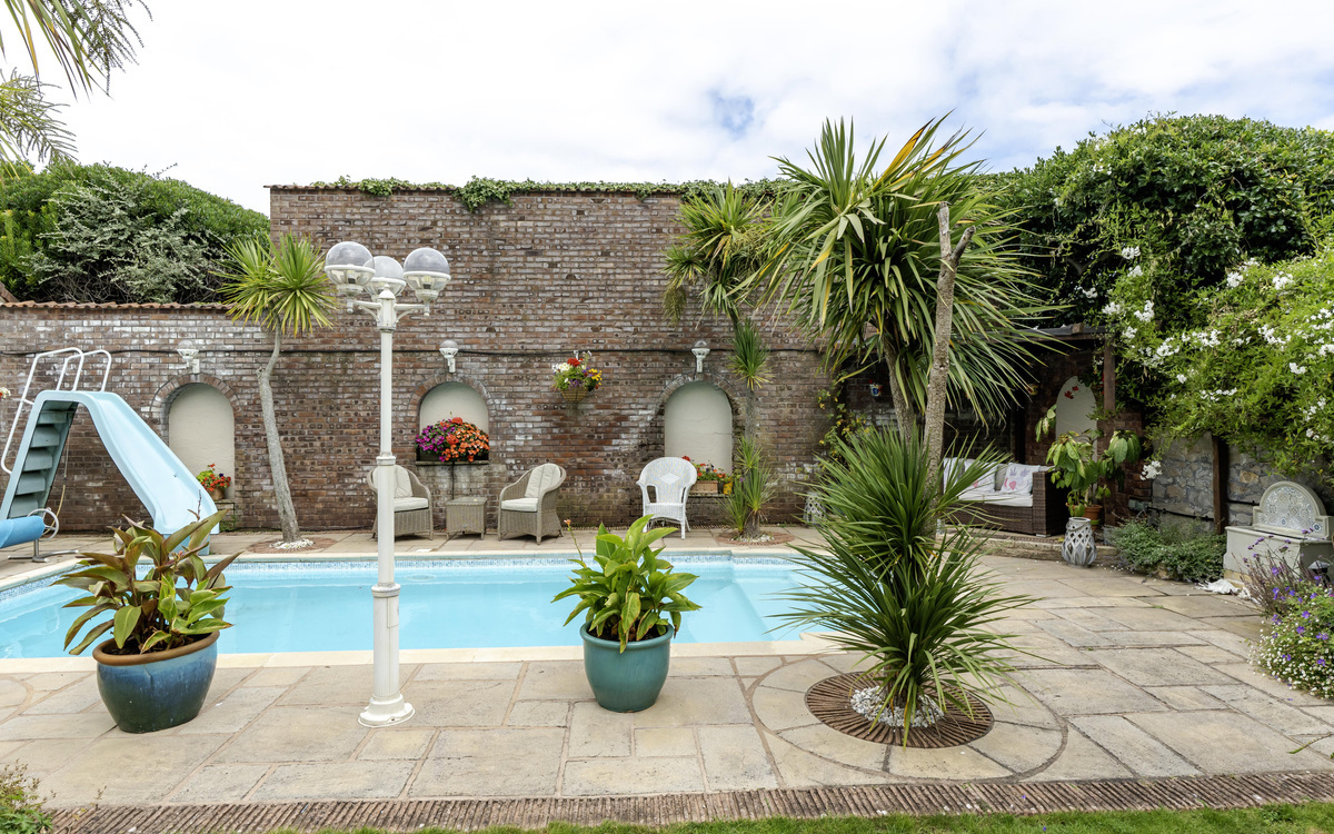 - Front and rear gardens with swimming pool at rear