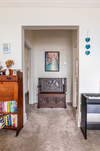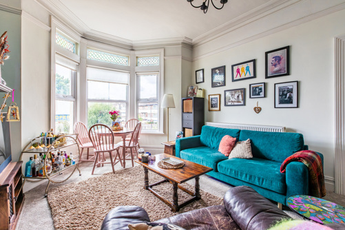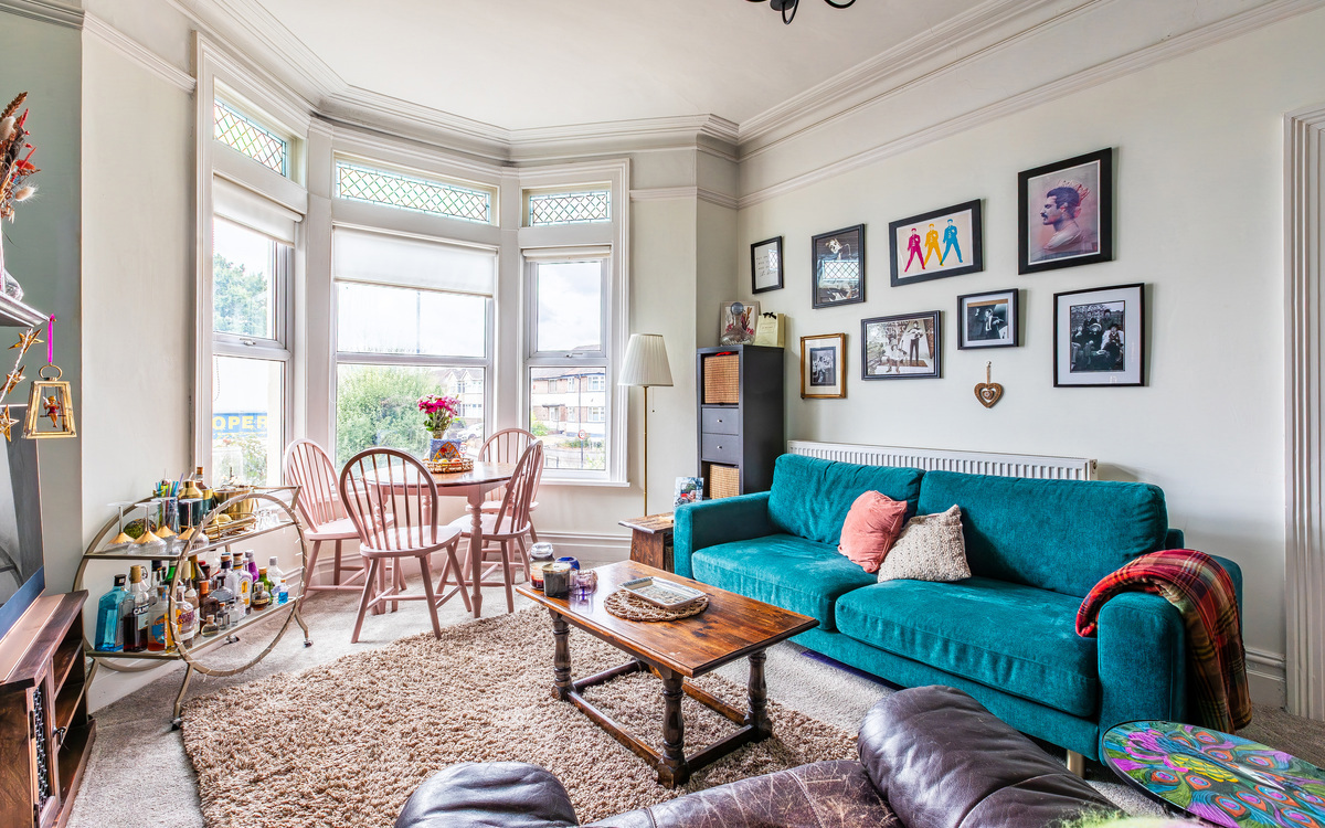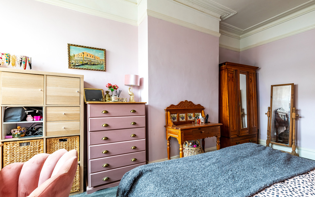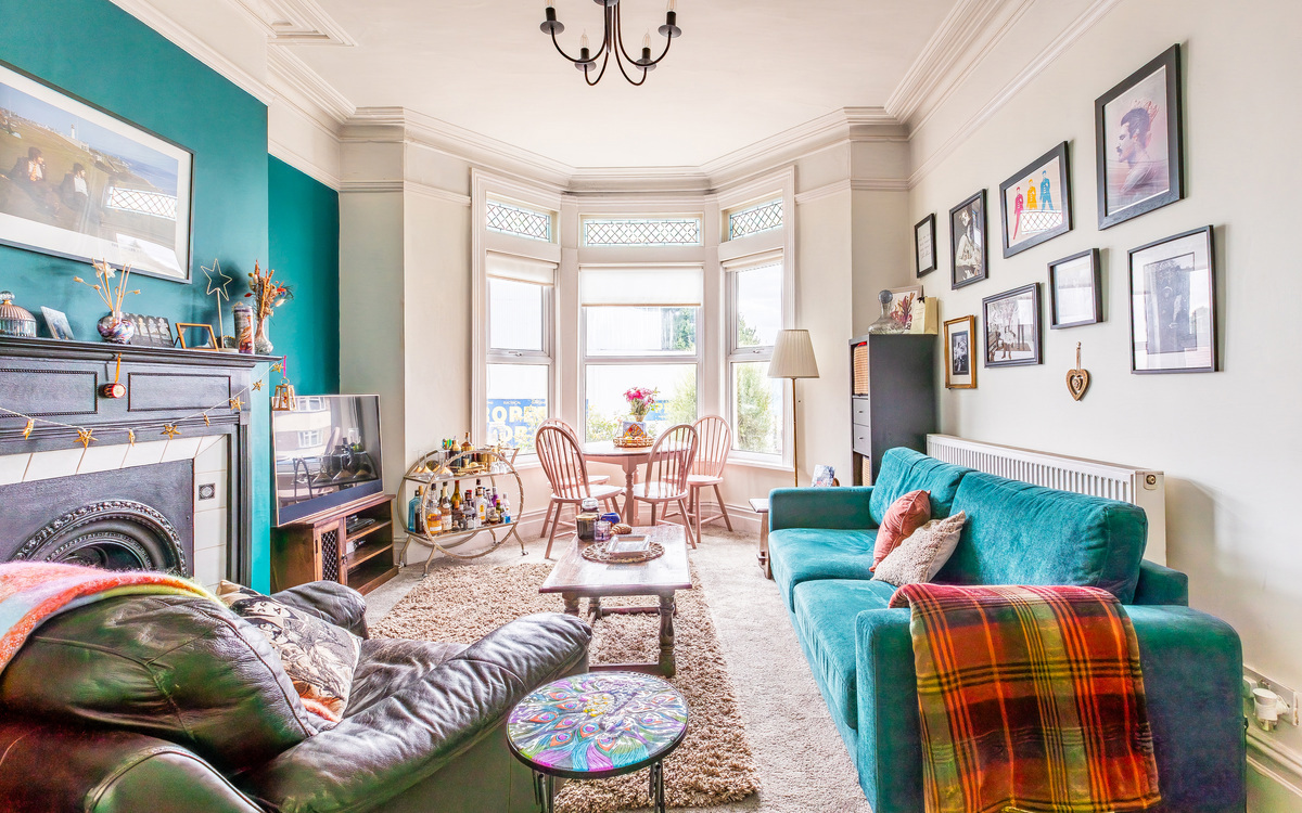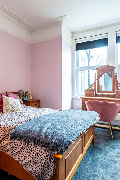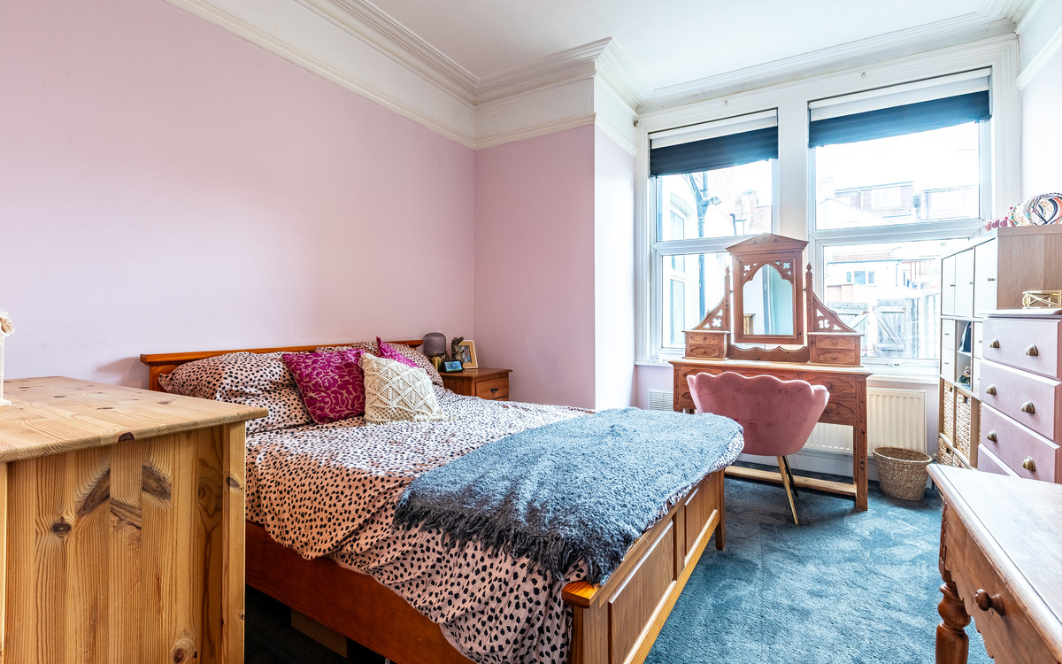 Inside off the entrance hallway, the living room is a generous size with a large bay window bringing in plenty of light and high ceilings adding to the feeling of spaciousness. With enough space to add a dining table, there are also period features like the fireplace that really draw the eye. The bedroom is next and is bright and airy, with room for a large bed as well...