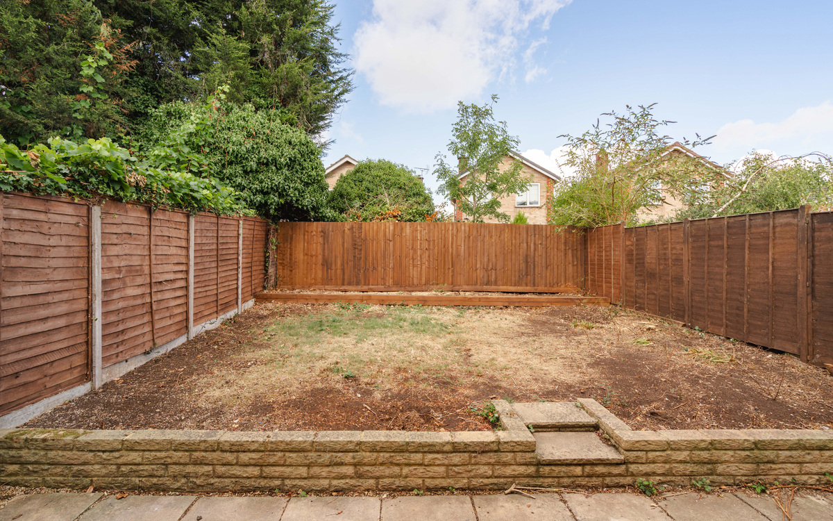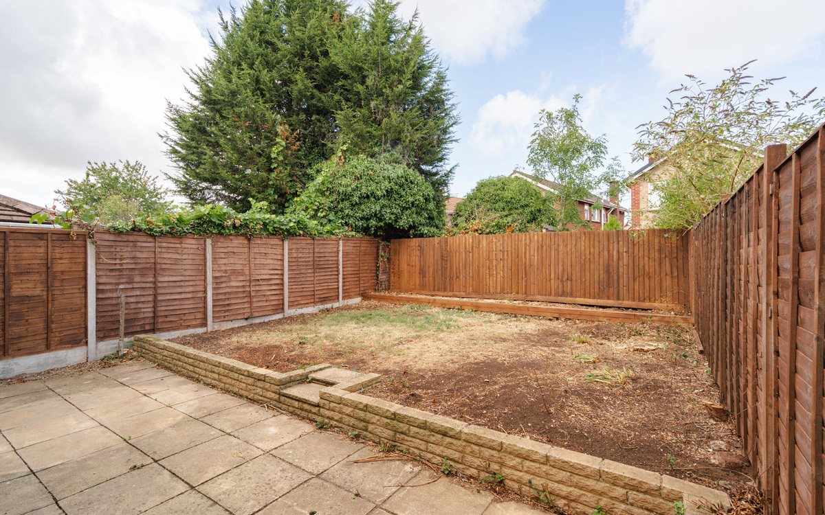 The back garden is accessed either from the living room or from the garage.