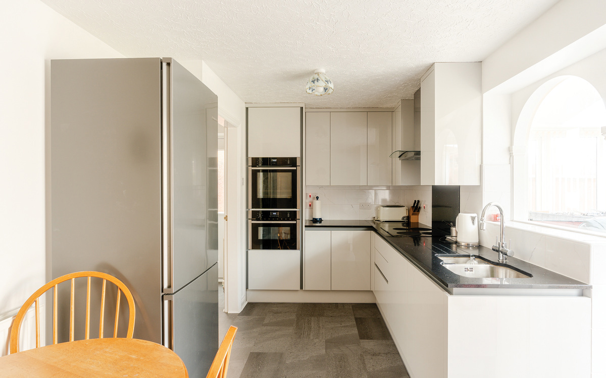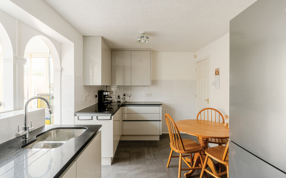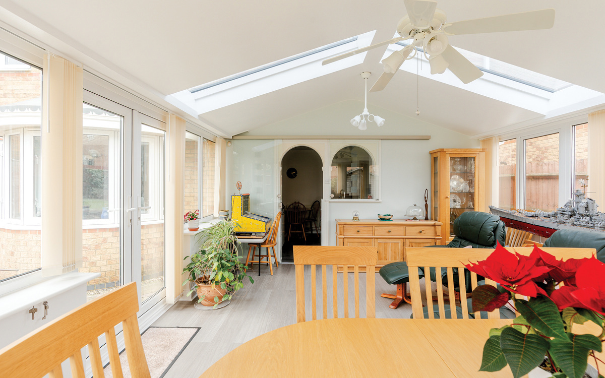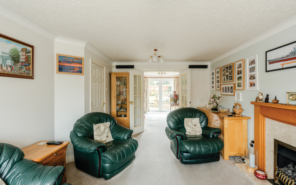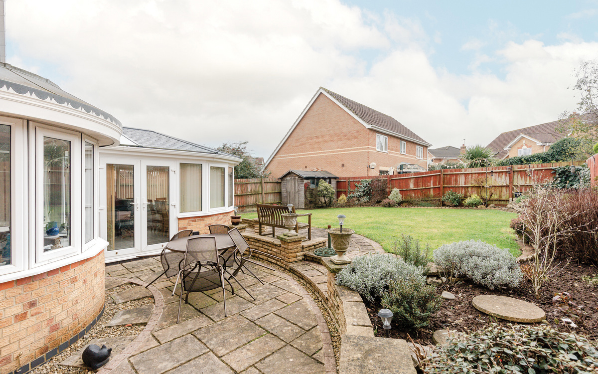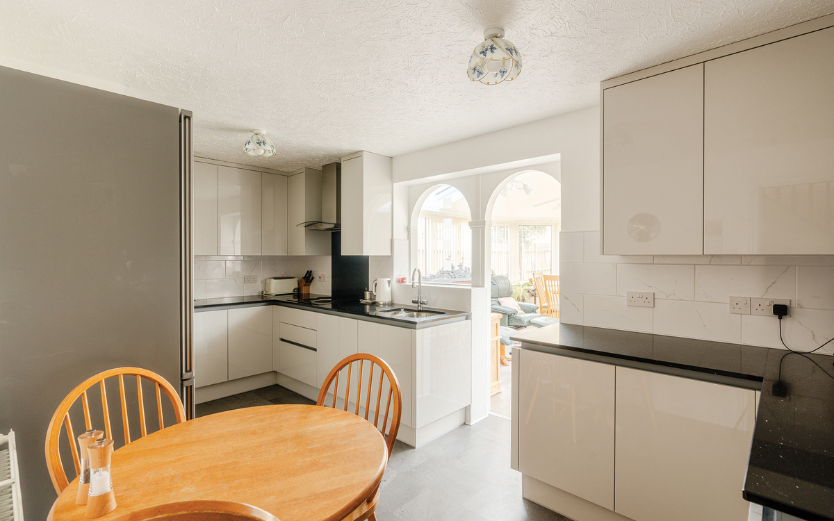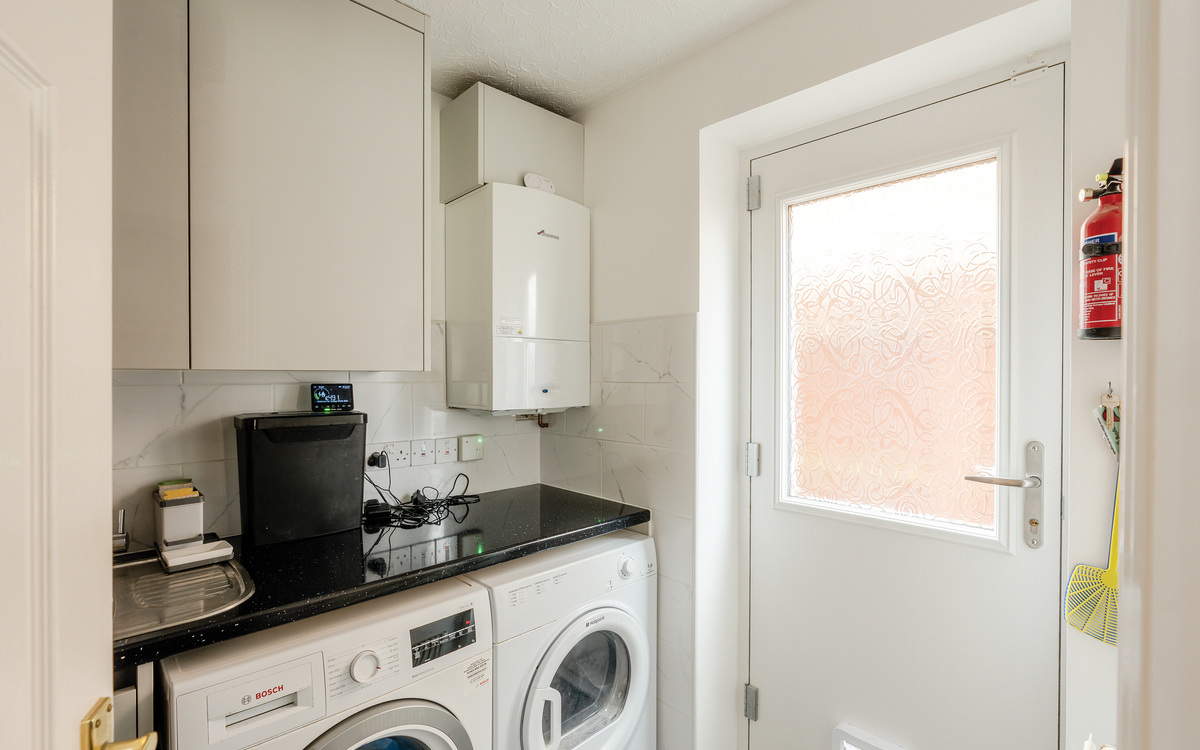 At the heart of the home is the refitted Wren kitchen, completed in 2023 and finished with quartz worktops, integrated Neff appliances and induction hob, complemented by water-resistant Karndean flooring. The kitchen flows seamlessly into the stunning garden room/conservatory, enhanced by a solid roof installed in 2023, creating a light-filled space ideal for dining and relaxing year-round, with French doors opening onto the garden. A separate utility room provides additional storage and external access.