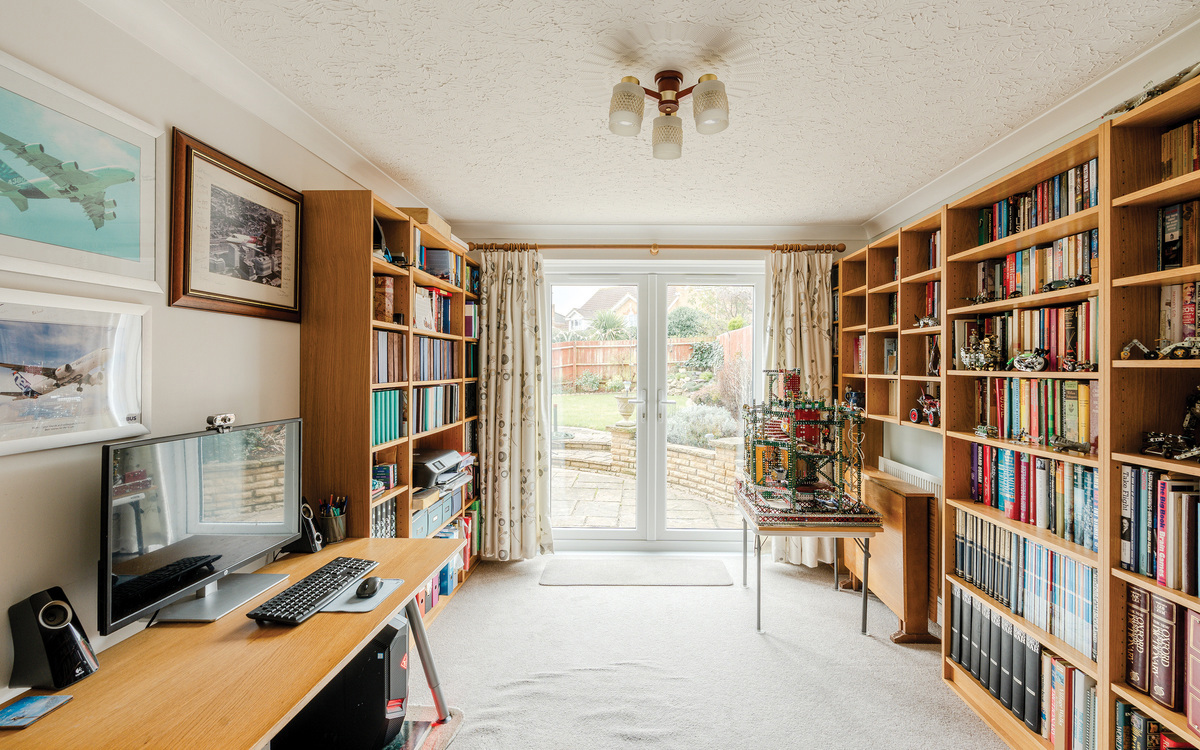 The ground floor offers a superb range of versatile reception spaces. The elegant lounge enjoys a recently upgraded bay window, a feature fireplace and concealed wiring for surround sound. Double doors lead through to a dining room with fitted bookcases and new French doors opening onto the rear patio, perfect for both entertaining and home working. A further hobby room/study with a distinctive bay window adds excellent flexibility for modern family living.
