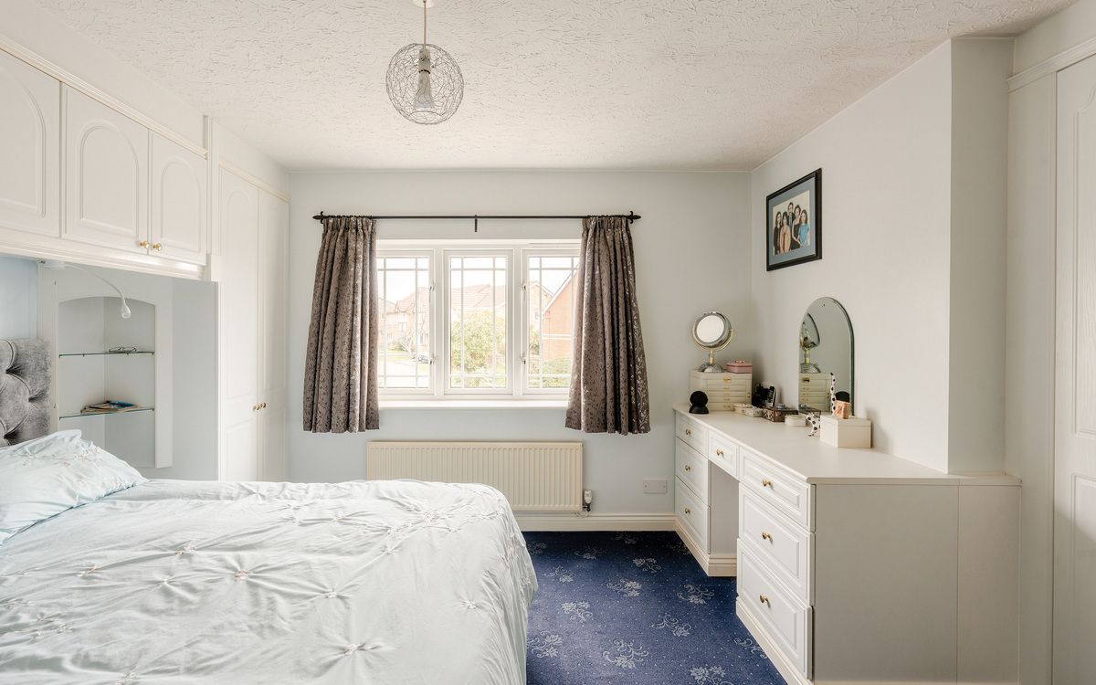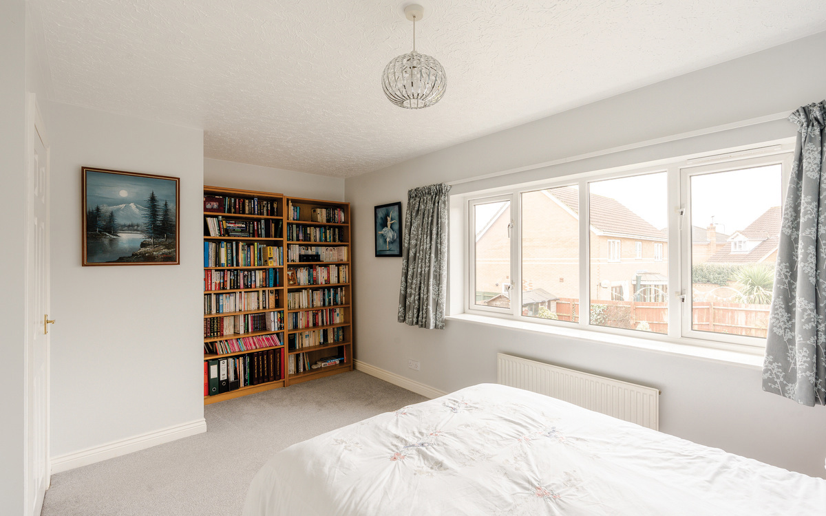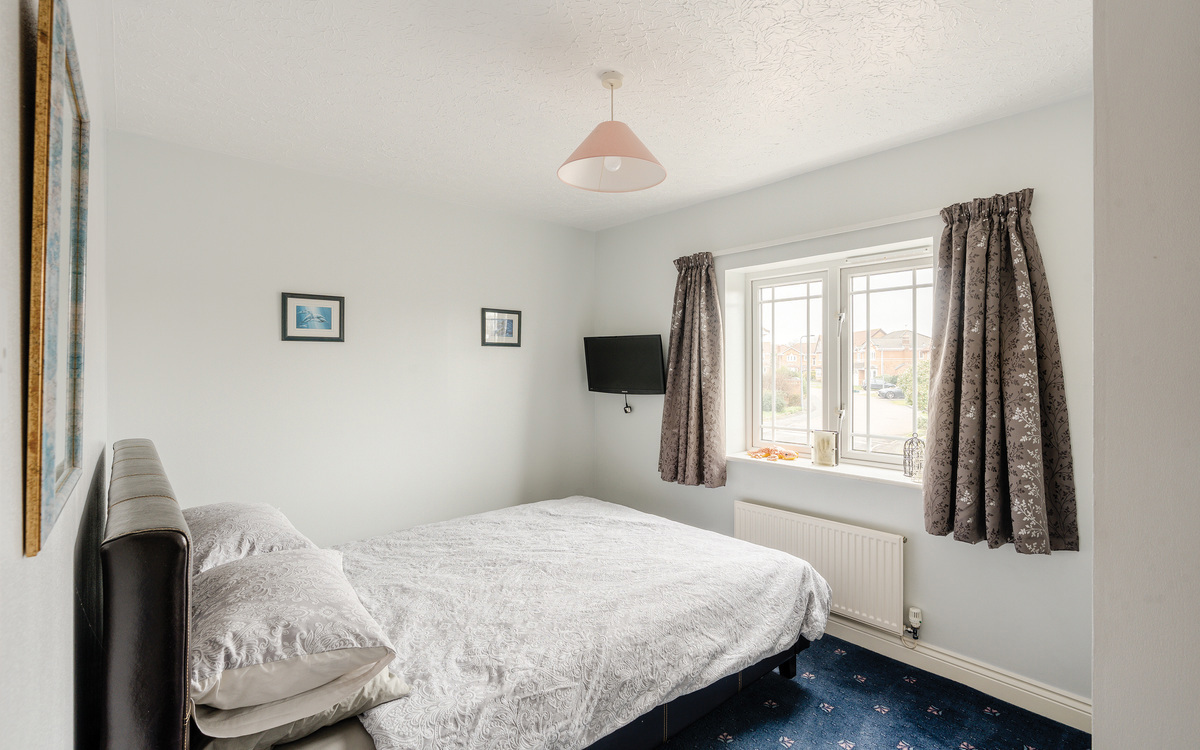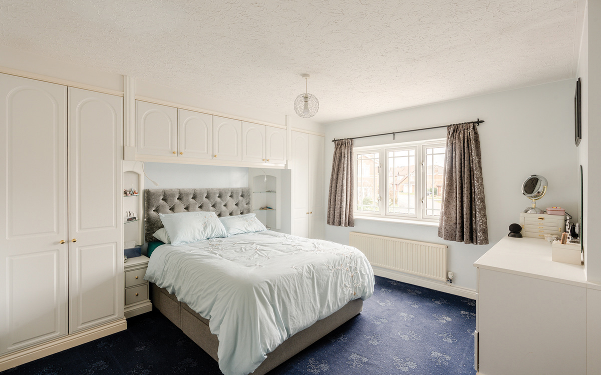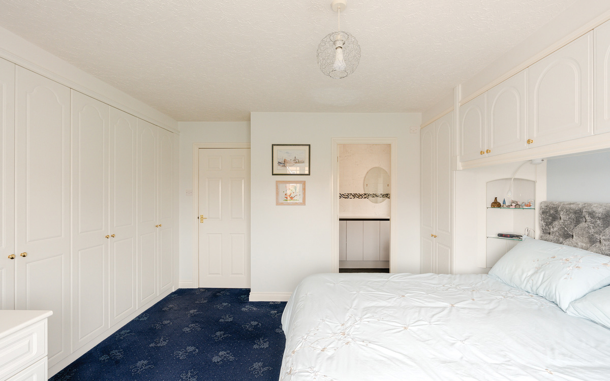 Upstairs, the generous gallery landing gives access to all five bedrooms and the family bathroom. The principal bedroom benefits from extensive fitted wardrobes, a dressing area and a stylish en-suite shower room refitted in 2023. Bedrooms two through five are all comfortable doubles, each with fitted wardrobes and TV points. The contemporary family bathroom is fully tiled and features both a bath and a separate corner shower.