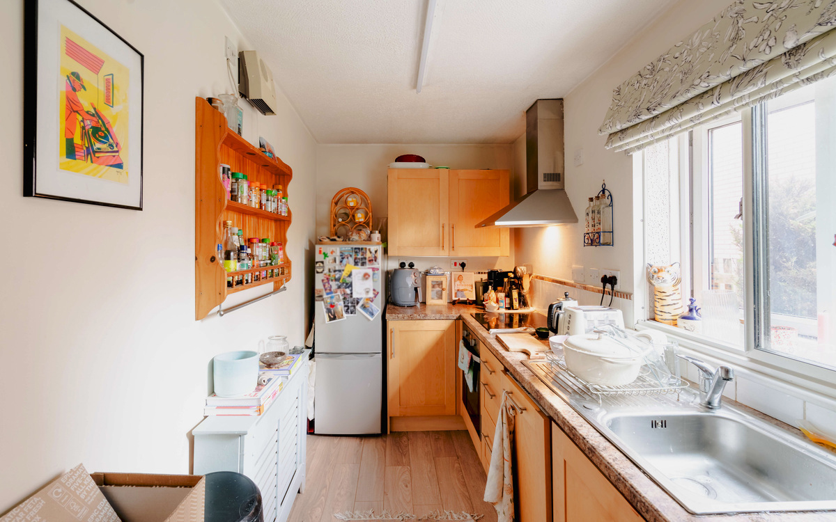 Situated on the ground floor of a small block of three apartments, this property benefits from its own private entrance, an excellent location, allocated parking, and no onward chain. Inside, the accommodation includes a well-proportioned living room, a separate kitchen, a double bedroom, and a four-piece bathroom featuring both a bath and a separate shower. There is also a generous storage cupboard. The property is fully electric, equipped with a water tank and a combination of night-storage heaters and panel heaters.