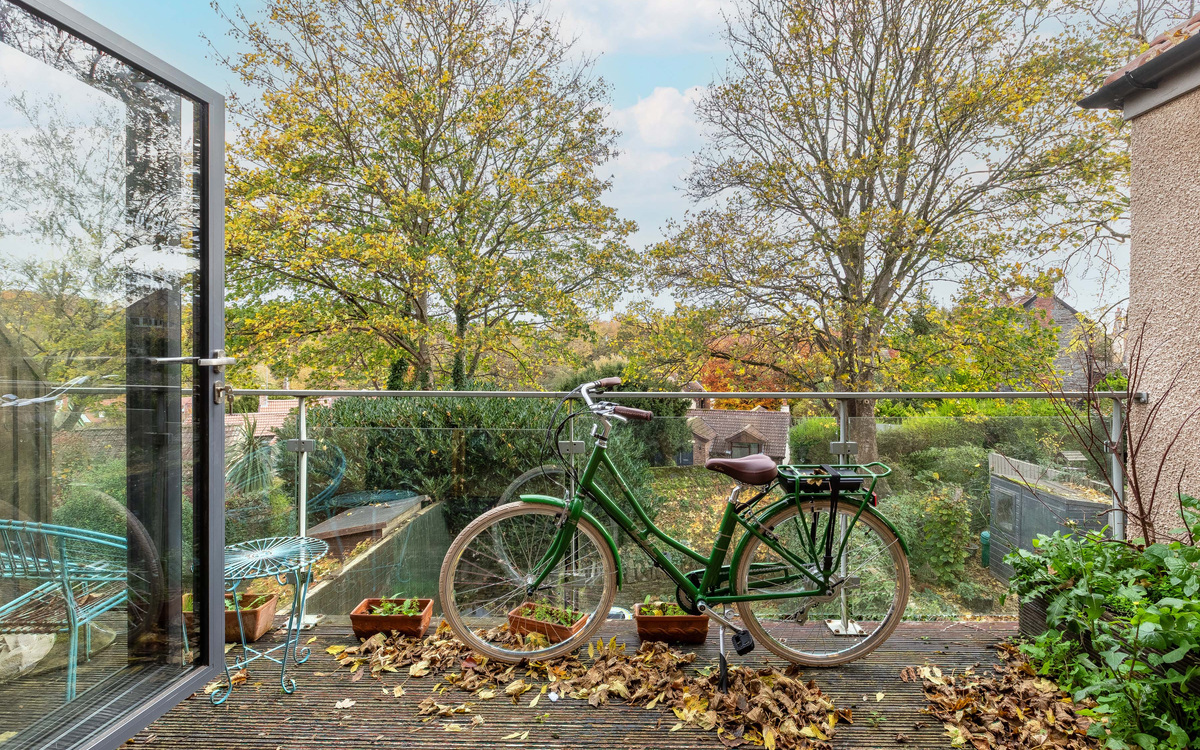 - Large balcony with treetop views