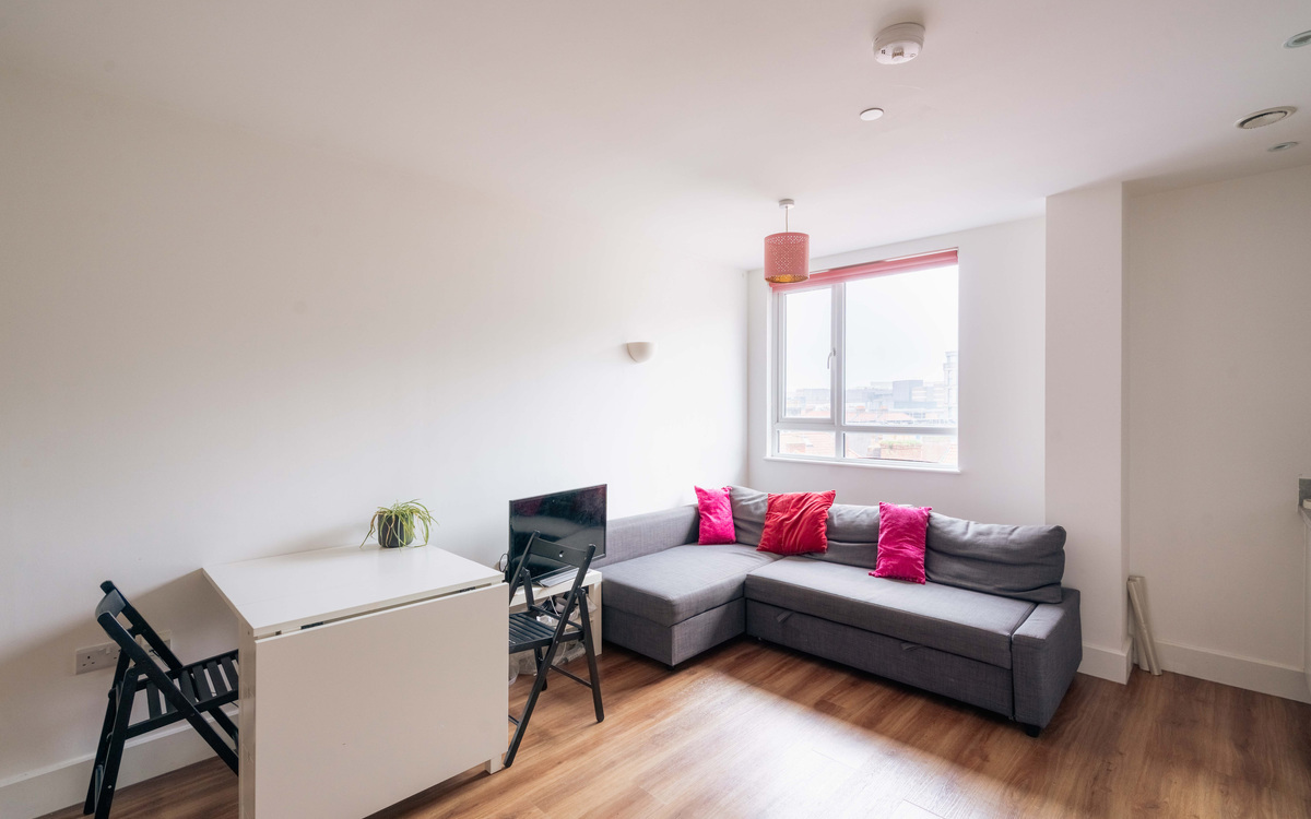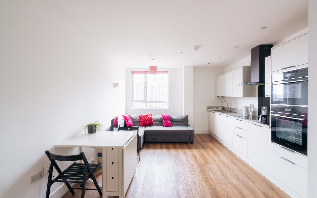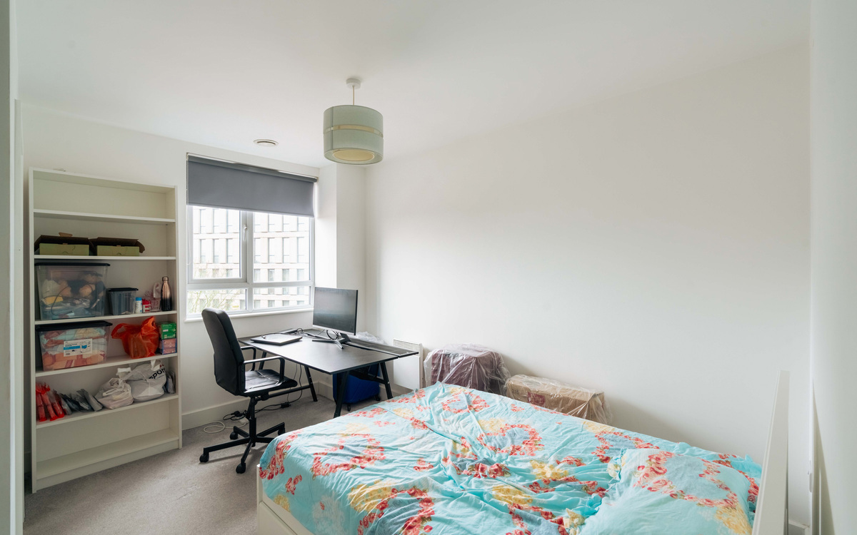 This modern two-bedroom apartment situated on the fourth floor of this purpose-built apartment block is a perfect example of contemporary, city living. The flat consists of entrance hall, master bedroom, second bedroom, main bathroom, and an open-plan kitchen/diner. The master bedroom is a good size and benefits from its own ensuite, as well as plenty of space for st...