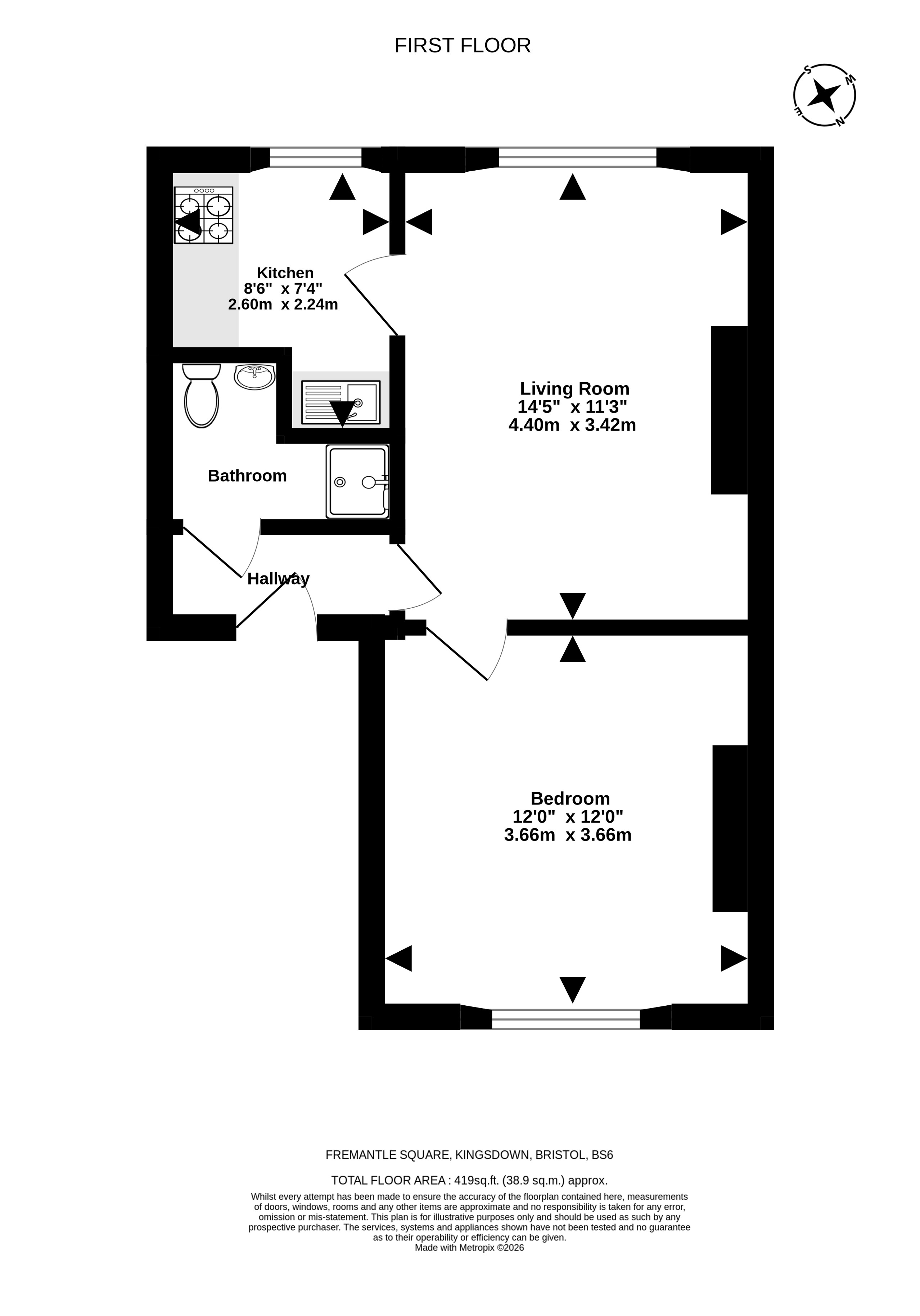 A light and bright one bedroom first floor flat, nestled around the edge of Fremantle Square, close to the exciting selection of independent cafes, shops and restaurants on Gloucester Road. The accommodation is well balanced and versatile. Both the living room and bedroom are generously sized with high ceilings, lovely fireplaces, ornate cornicing and large sash windows that allow for light to flood in. The kitchen is separate, and the bathroom, although compact, works very well. The property is a blank canvas, yet with all the character features to work around. This is an opportunity for those with vision to transform the flat into something wonderful. Being sold with no chain.