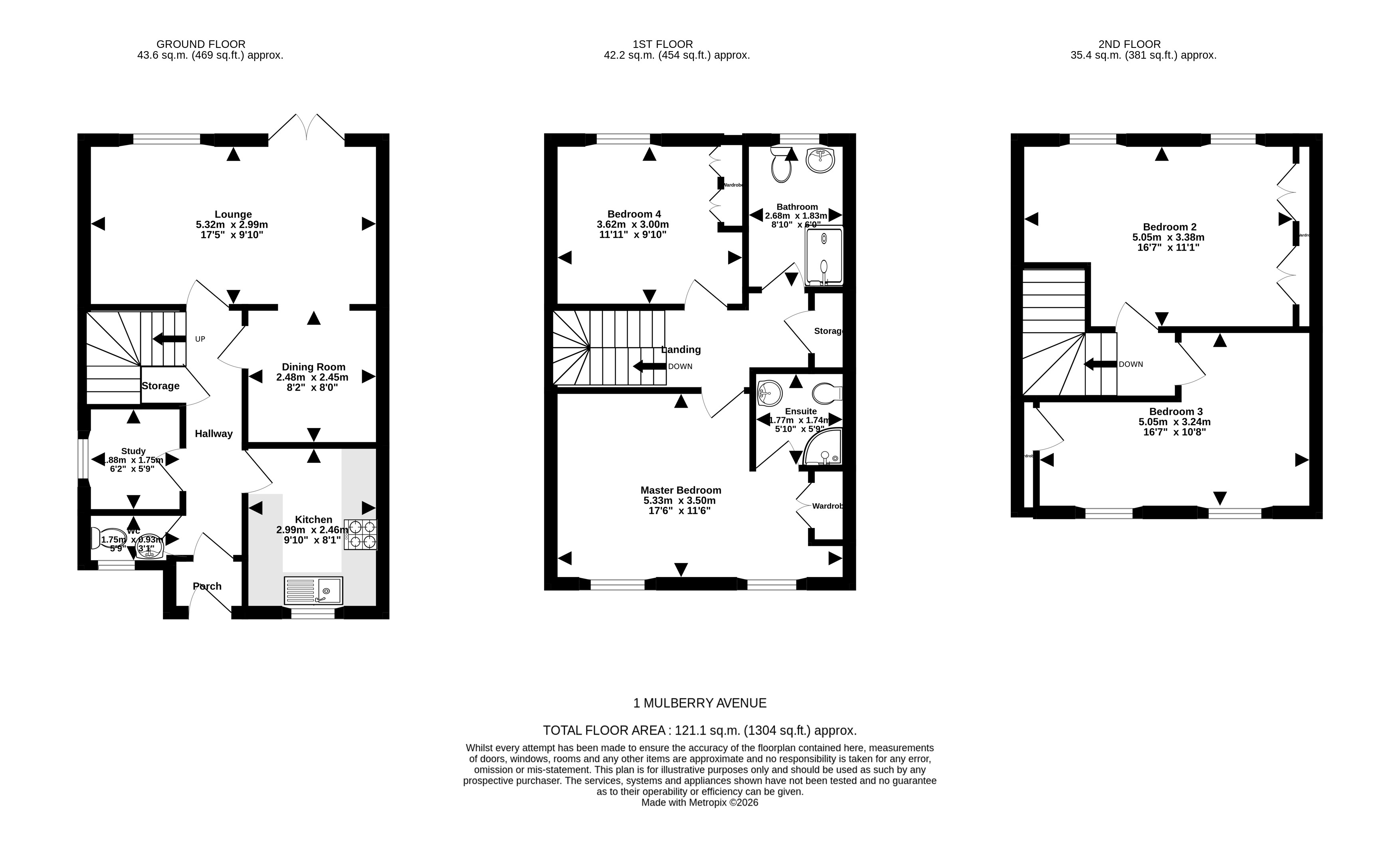 Step inside and you'll find plenty of living accommodation on the ground floor, with the entrance hall having access to a w/c, study, and modern fitted kitchen. There is a lovely open plan lounge/dining room, the full-width lounge has double doors giving access out to the garden, and there is an opening to the dining room, which is perfect for entertaining guests or enjoying family meals together. The first floor hosts the master bedroom which has fitted wardrobes and its own en-suite shower room, there is a further double bedroom, family bathroom suite and a storage cupboard located off the landing. On the top and final floor are the final 2 double bedrooms both with fitted wardrobes to complete the internal accommodation.