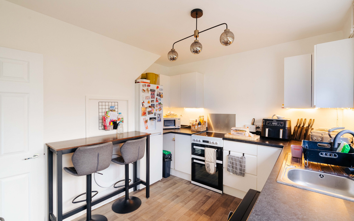 Accessed via the side of the property, which allows for a spacious living room that spans the full width of the front of the house. to the rear is a separate kitchen that leads out to the garden. Upstairs, there are 2 double bedrooms and a family bathroom.