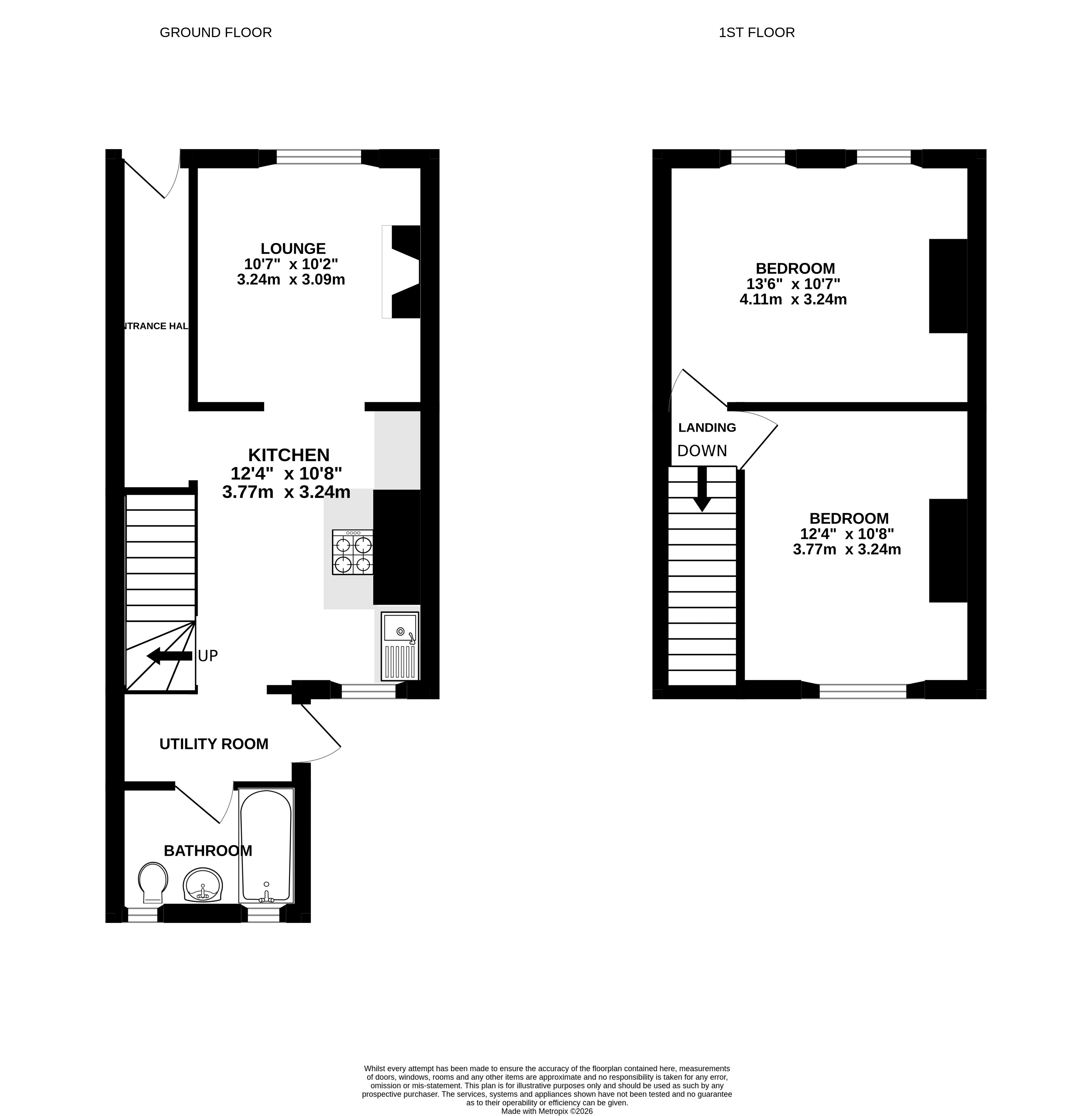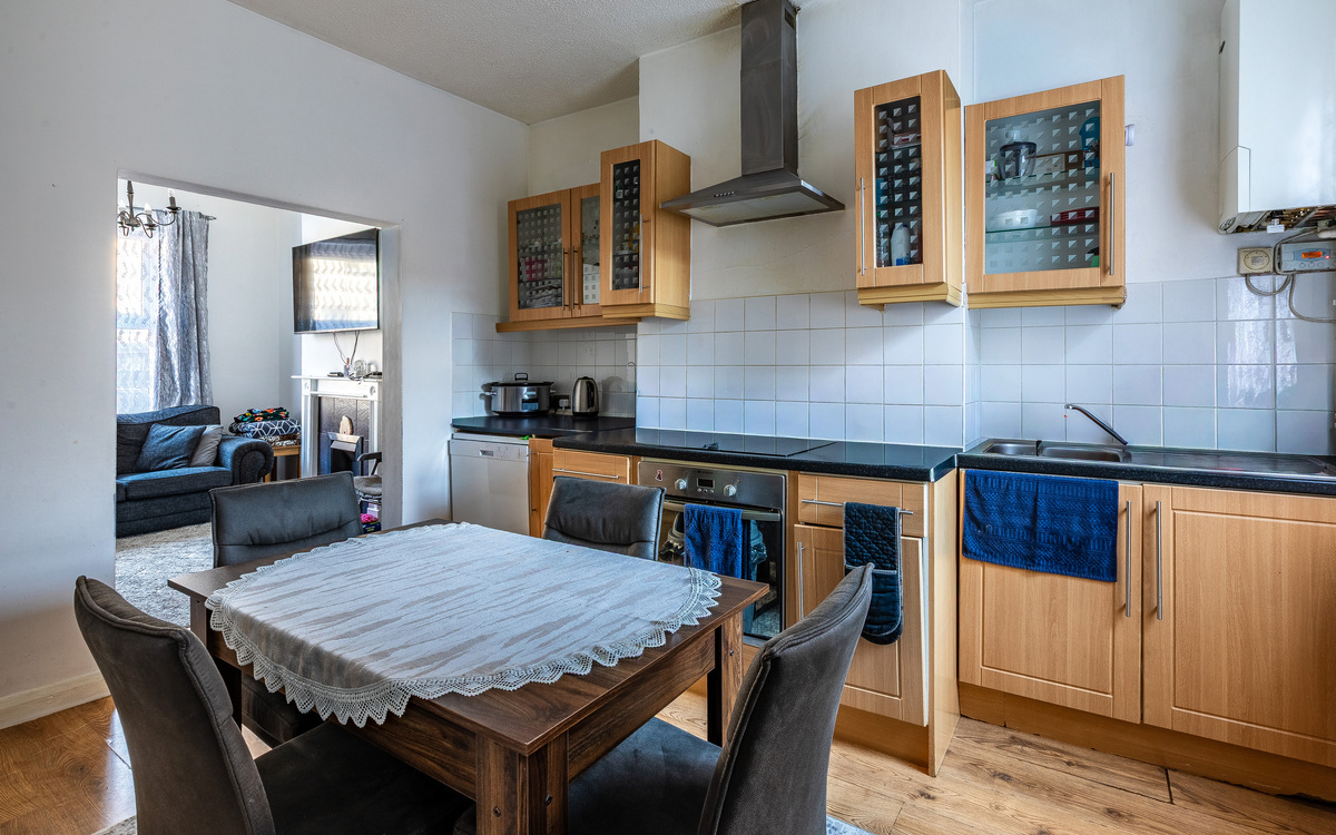This home has an open plan living space downstairs, the lounge sitting at the front has a large opening into the kitchen. The dual aspect of these two rooms allows plenty of light to flood through. Also, on the ground floor there is a utility room that provides access to the bathroom and to the rear garden. Stairs ascend to the first floor where you will find 2 double bedrooms.