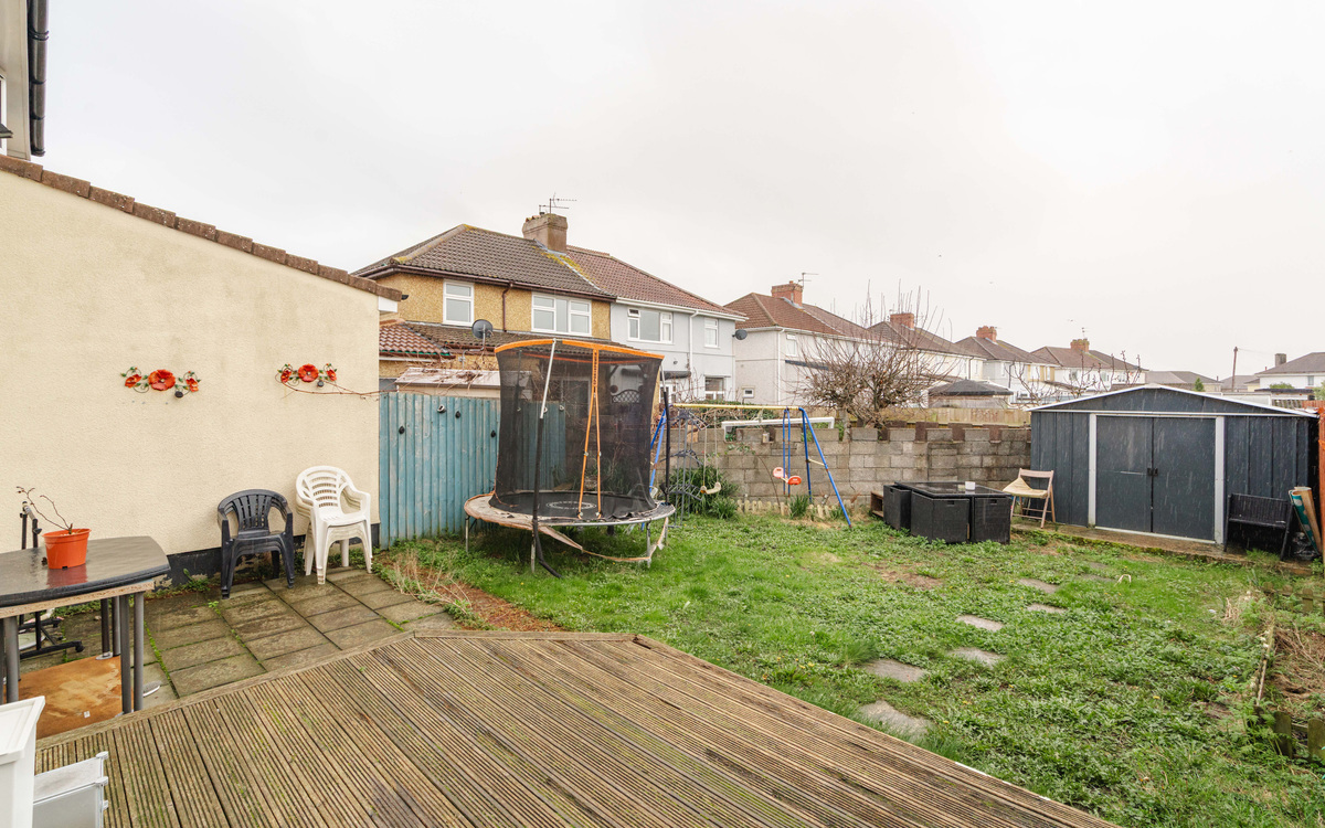 The rear garden is low maintenance and has a south facing aspect so enjoys sun throughout the day through the summer. There is a deck outside of the doors from the house and a patio which both provide plenty of seating space. There is also an lawn and a large shed at the end of the garden.