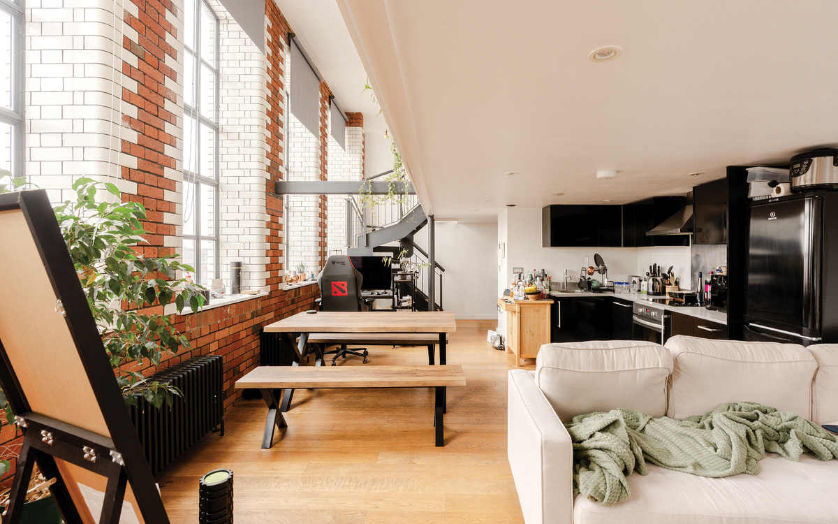 Situated within the iconic Robinsons Building, this impressive one-bedroom mezzanine apartment blends industrial character with modern convenience — offered to the market with no onward chain.