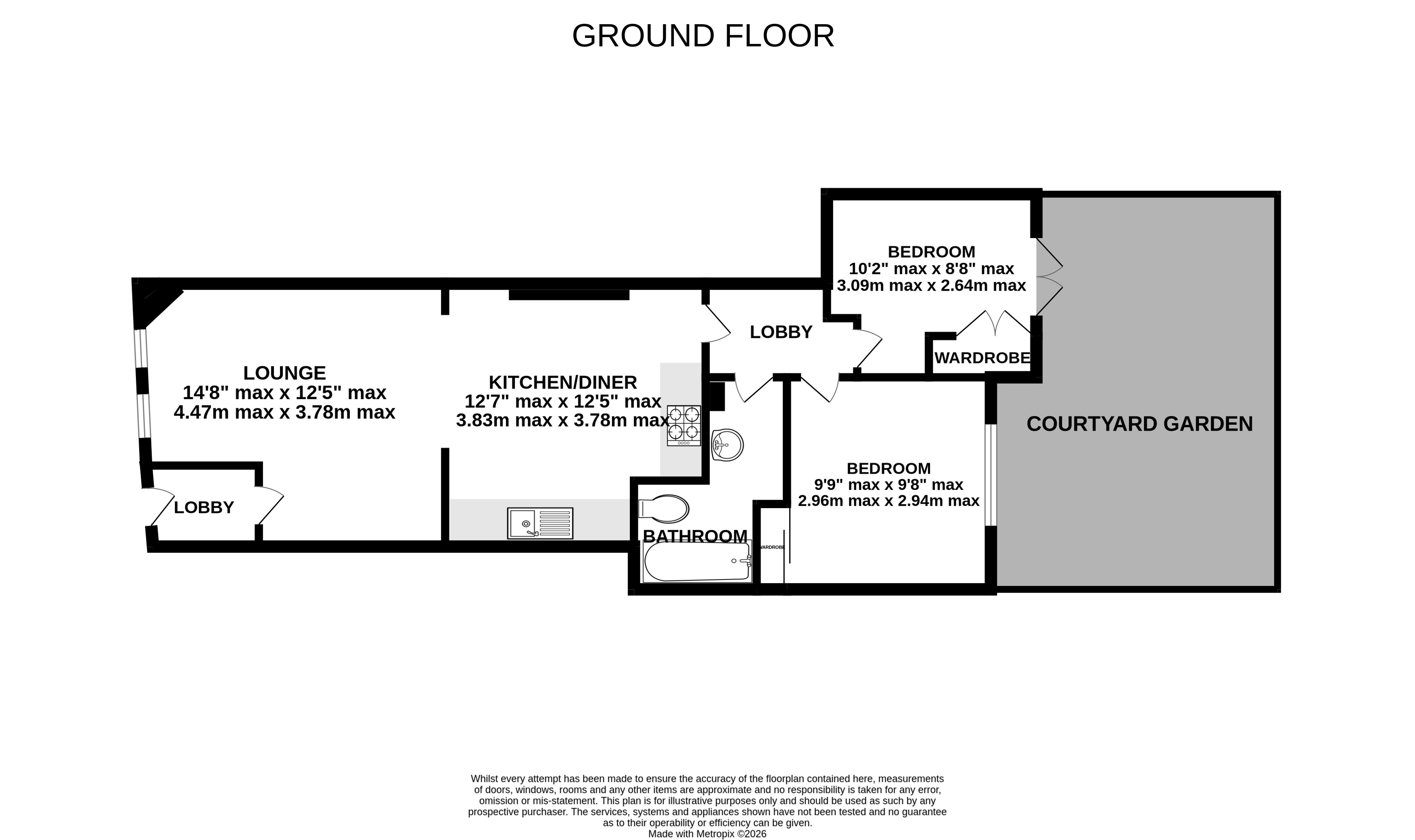 Ground floor flat with 2 bedrooms and a private garden.