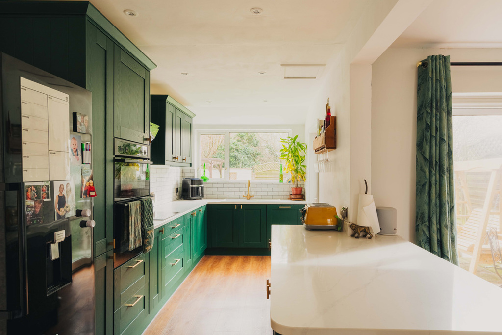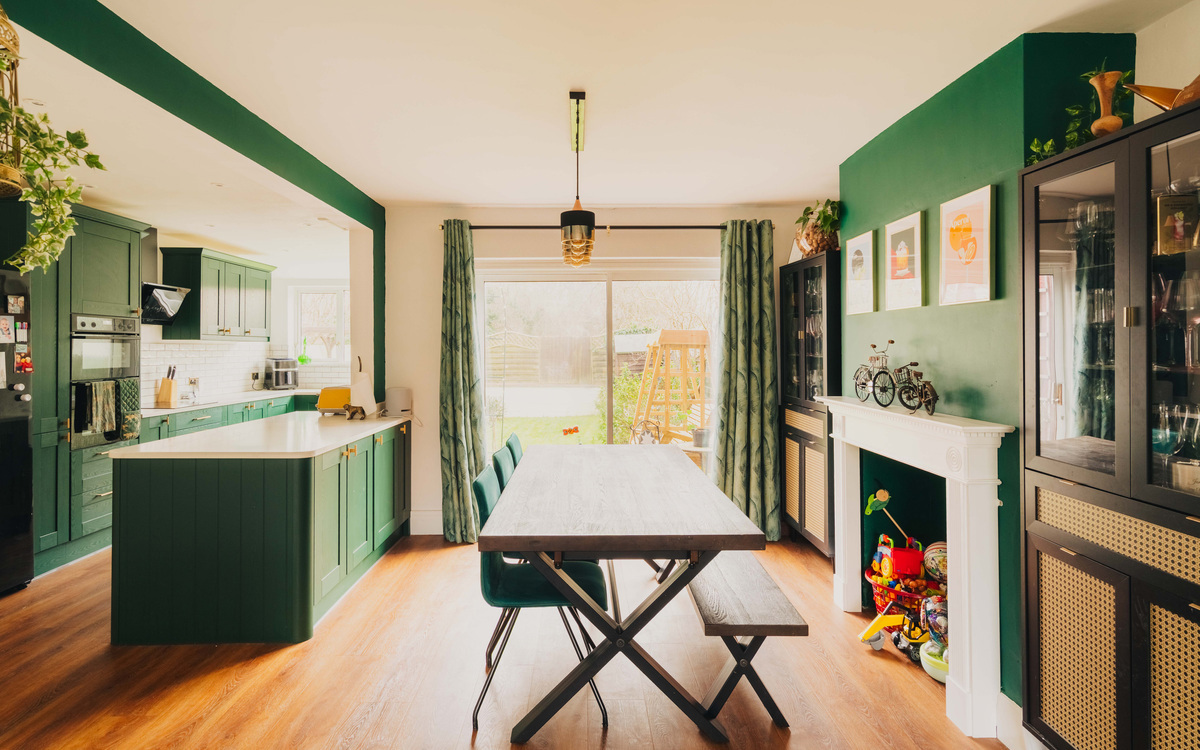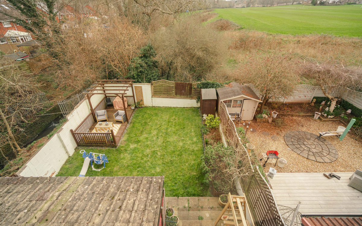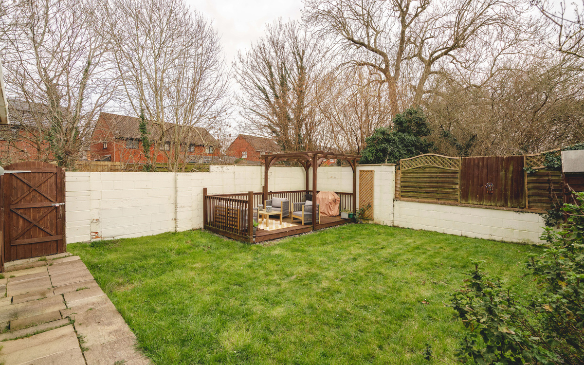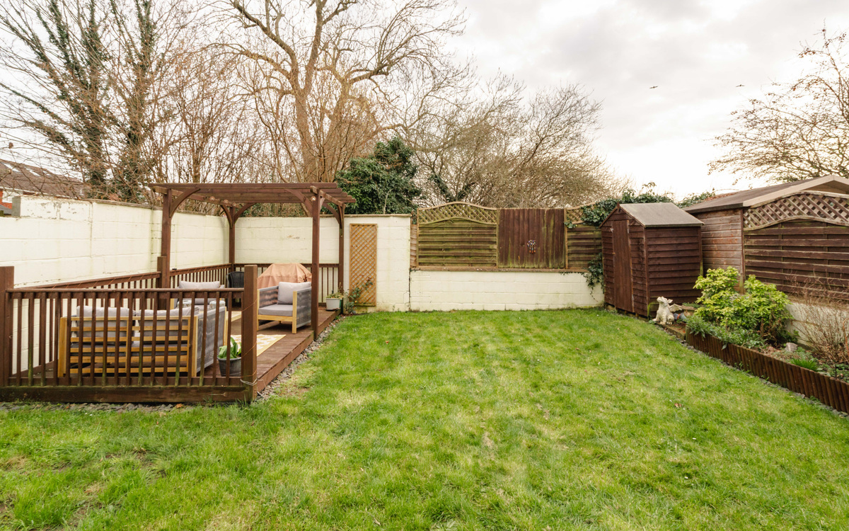 Inside off the entrance hallway, the living space is made up of separate yet combined spaces. The living area is at the front and features a bay window that lets in plenty of light while the dining area at the opposite end has ample space for a table and patio door access on to the garden. The kitchen is connected to the reception spaces thanks to the removal of the dov...