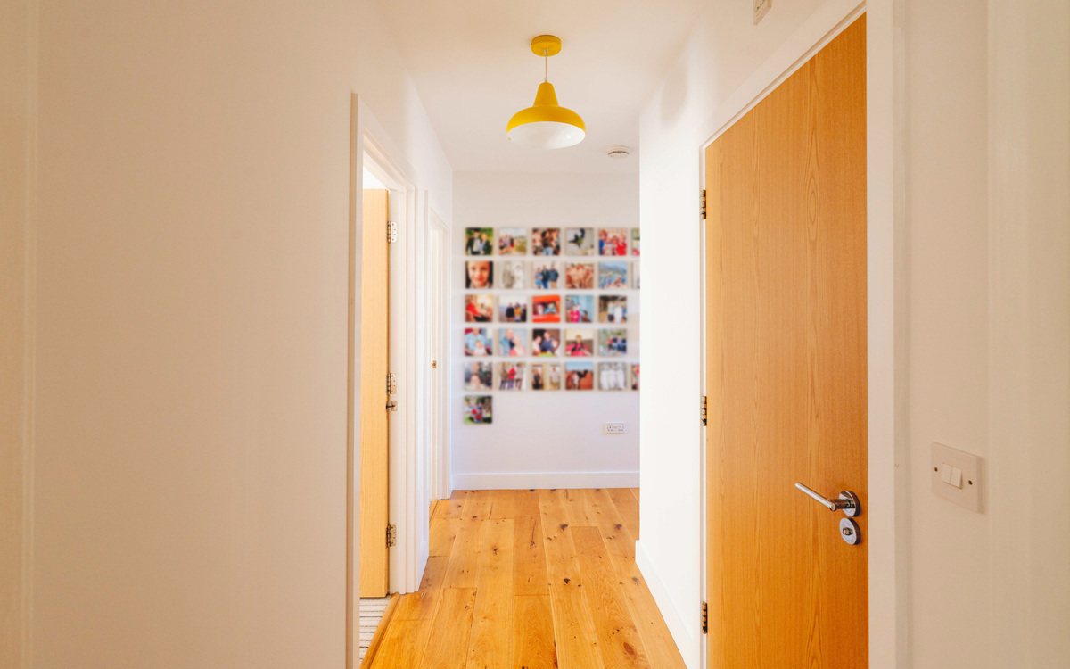 Upon entering, you are welcomed by a cleverly designed Z-shaped hallway, creating a real sense of space rarely found in apartments of this kind. This versatile area is ideal for additional storage units, statement pieces, or even secure bike storage, all without compromising the flow or feel of the home. A useful storage cupboard is conveniently positioned just off the entrance, while further storage solutions are thoughtfully integrated throughout.