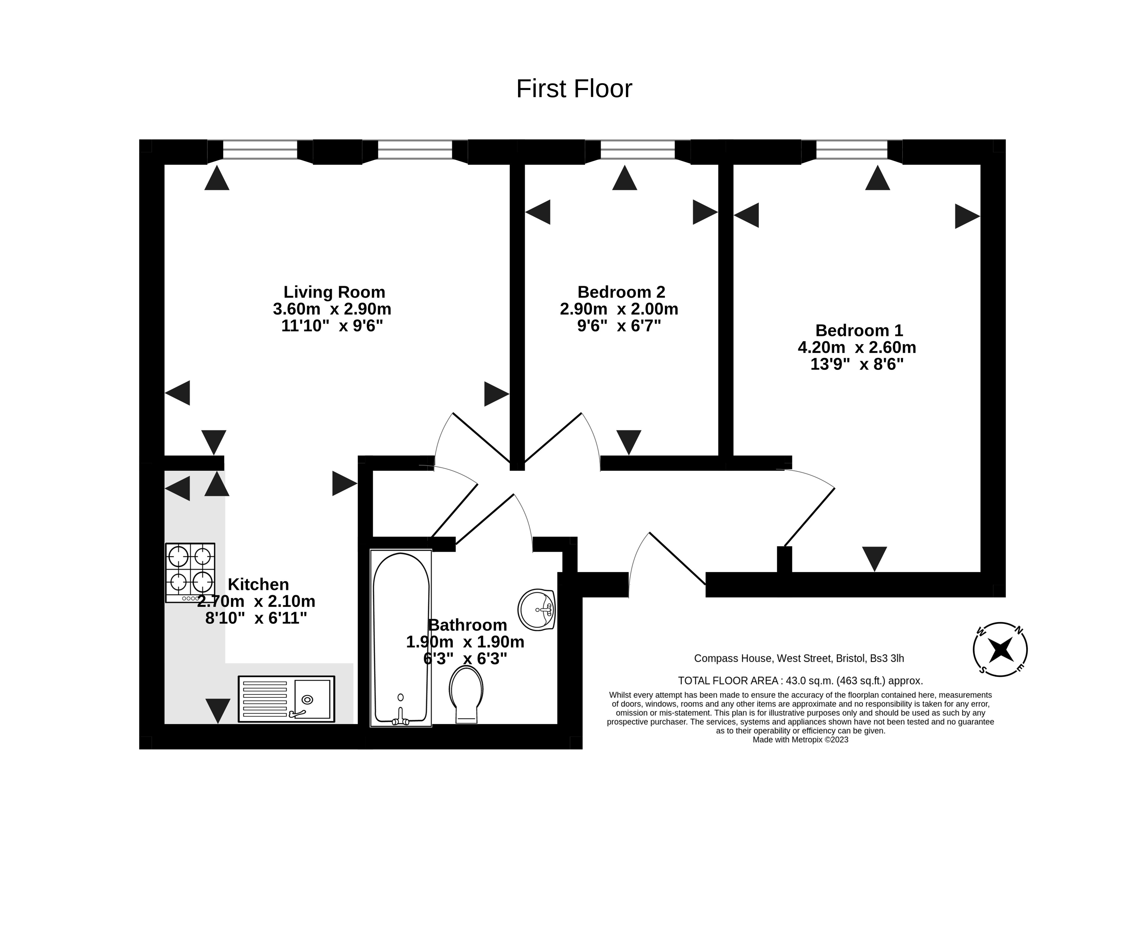 - Two bedrooms, both externally facing