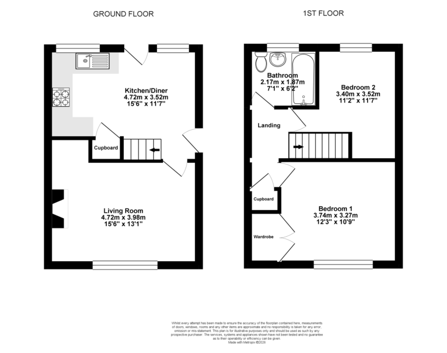 2 bed end terraced house