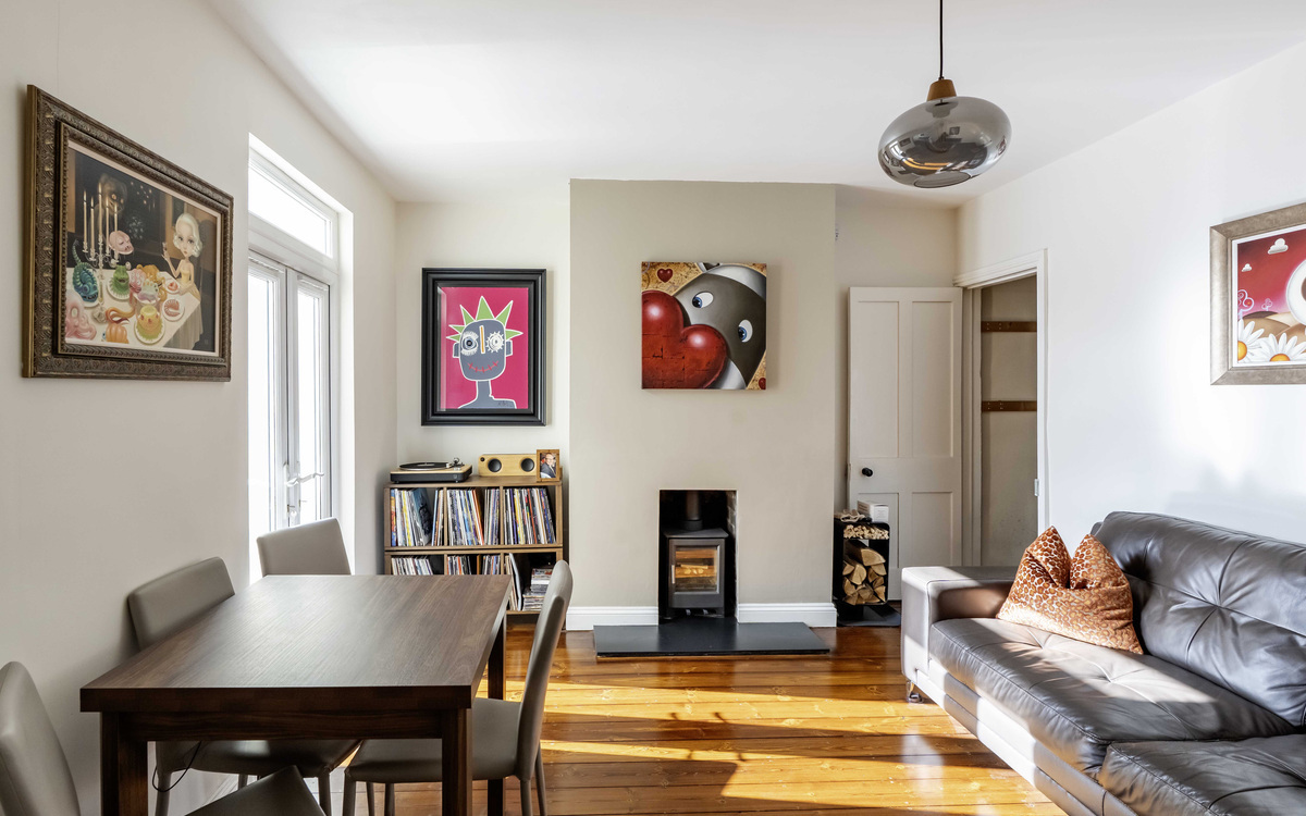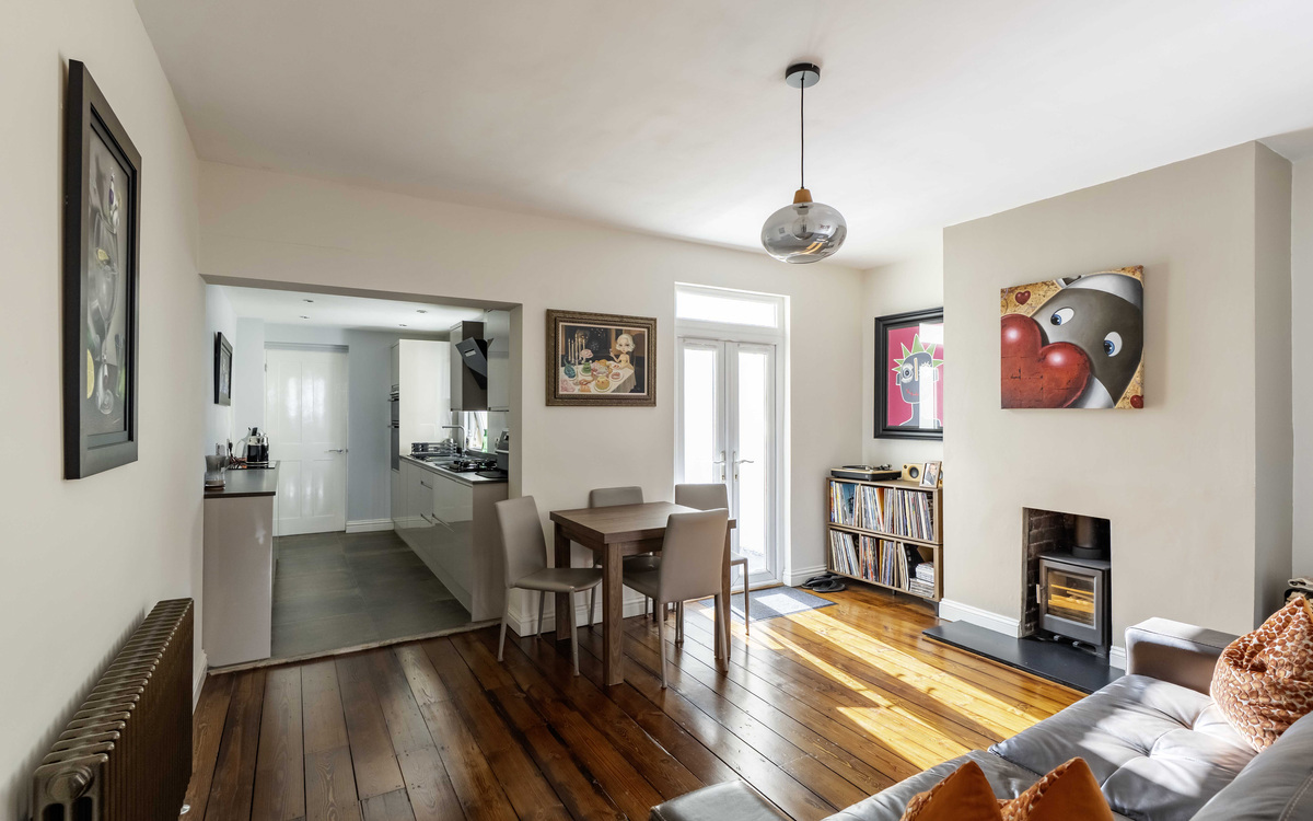 - Kitchen/Lounge/diner with log burner & exposed floorboards