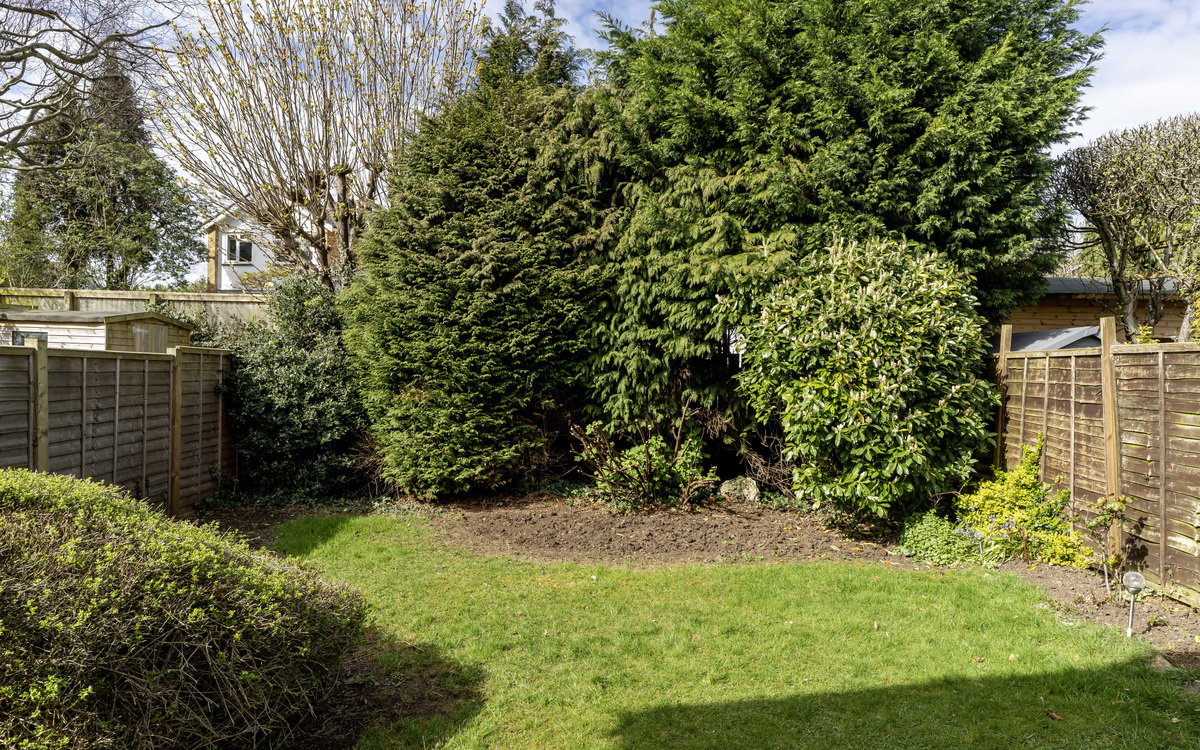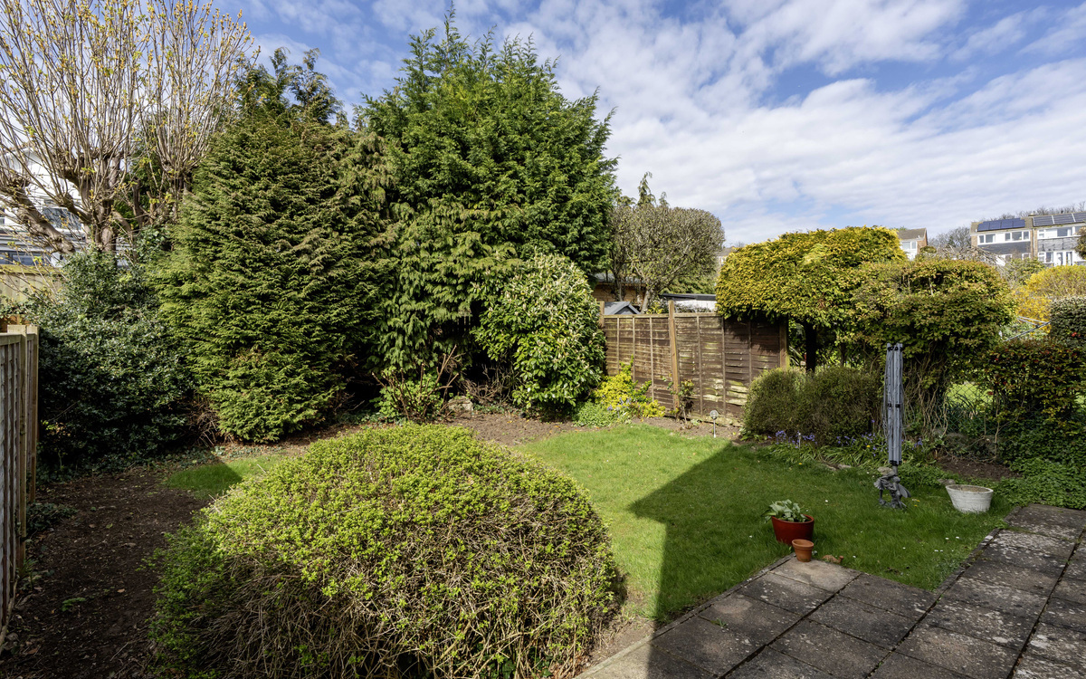 It's a flat, level garden with a lawned area in the centre and has lots of mature trees & shrubs that provide privacy