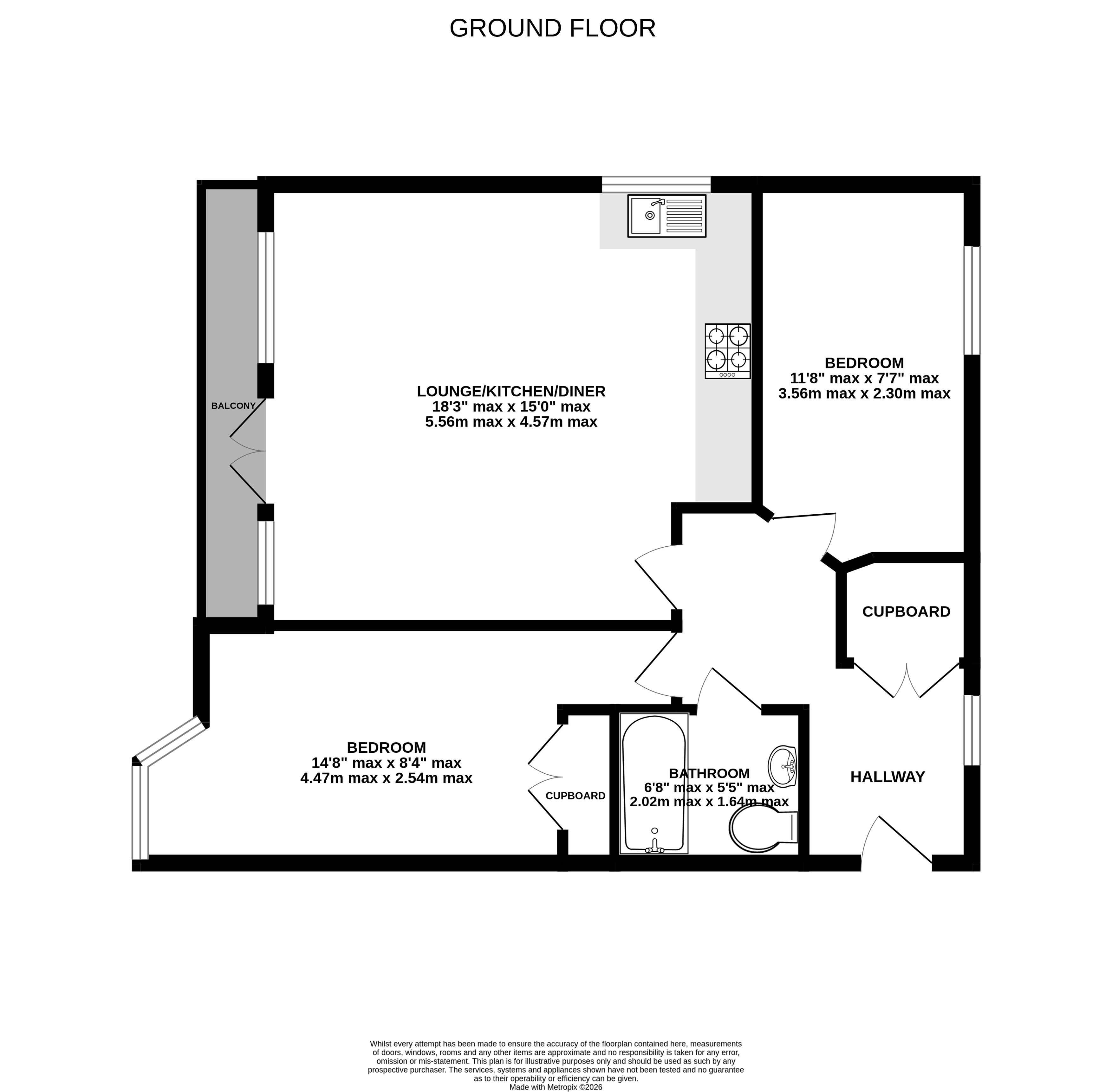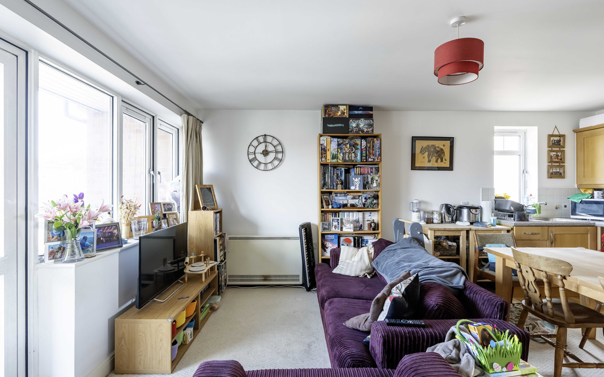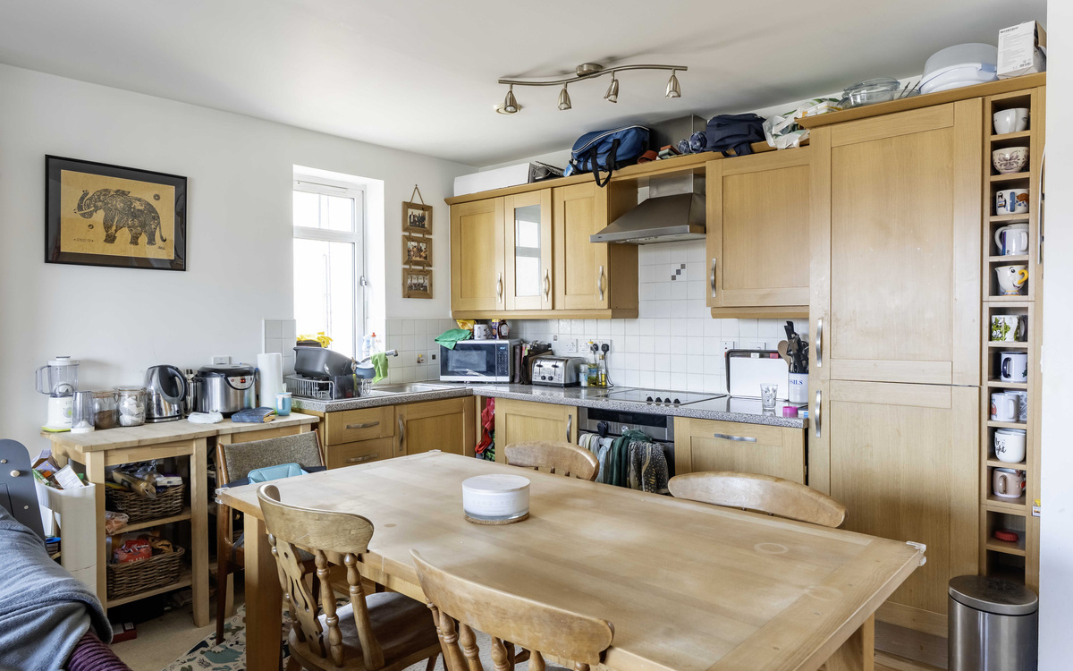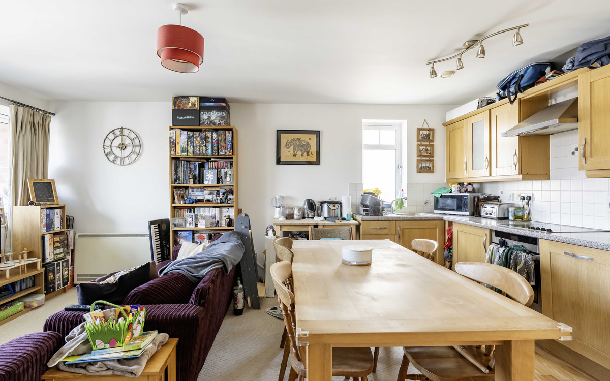 One of the biggest flats in this well-known development offering a large balcony and no onward chain. The entrance hall has doors to all rooms and a storage cupboard, the open-plan lounge/dining/kitchen has ample room for furniture, and the fitted kitchen has some integrated appliances and space for a dining table. The main bedroom has a bay window overlooking the front and a fitted wardrobe, the second bedroom overlooks the rear and the bathroom has a modern white suite. The balcony is accessed via doors from the lounge. The development has a lift, bike storage, bin storage and the communal areas are well-maintained to include a lawn garden with an array of plants, shrubs and garden benches to relax on.