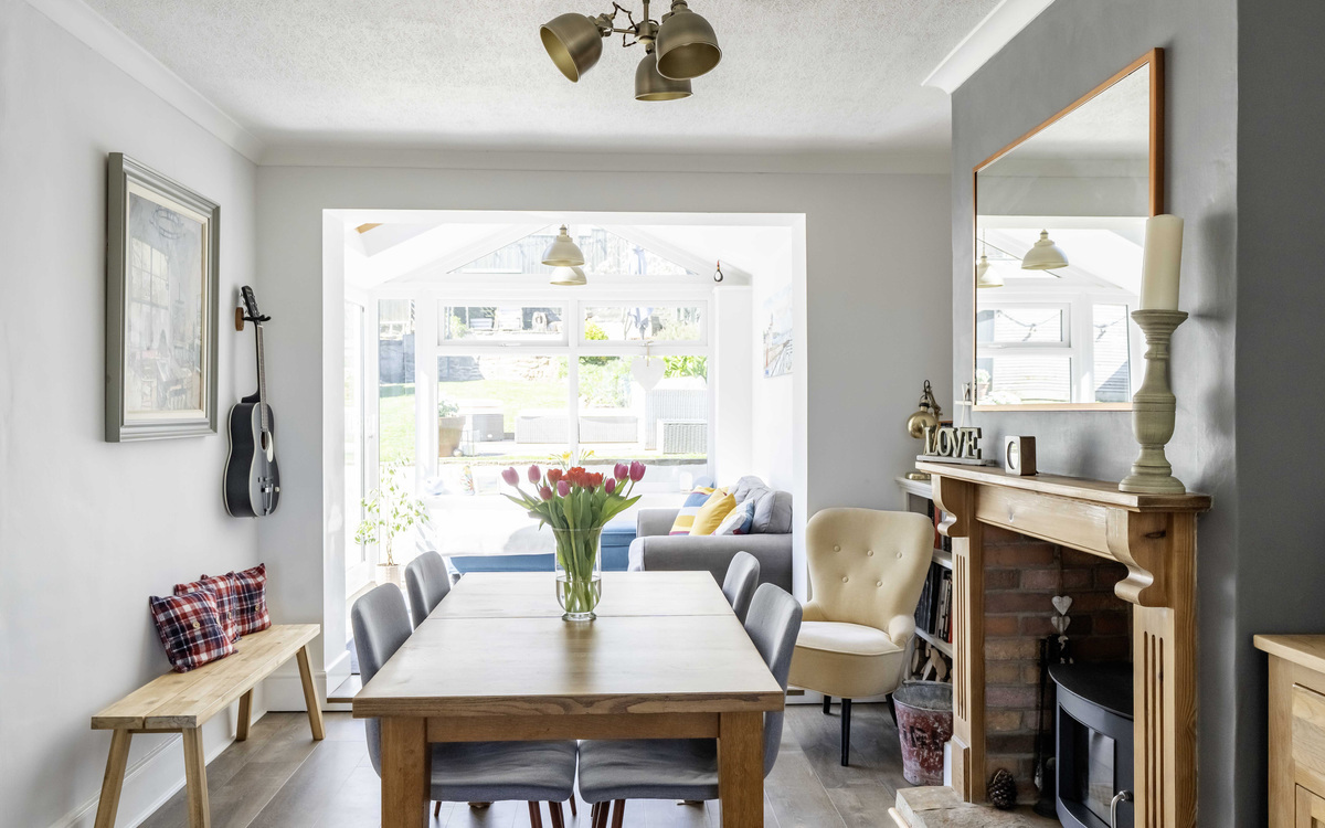 Ground floor hosts a light and airy entrance hall with storage cupboard and stairs. The open plan living area flows perfectly downstairs, the lounge overlooks the front garden, and the dining area has a working log burner which is perfect for those cosy winter nights. In addition to these two rooms, is a stunning family/garden room which has an apex roof with skylight a...