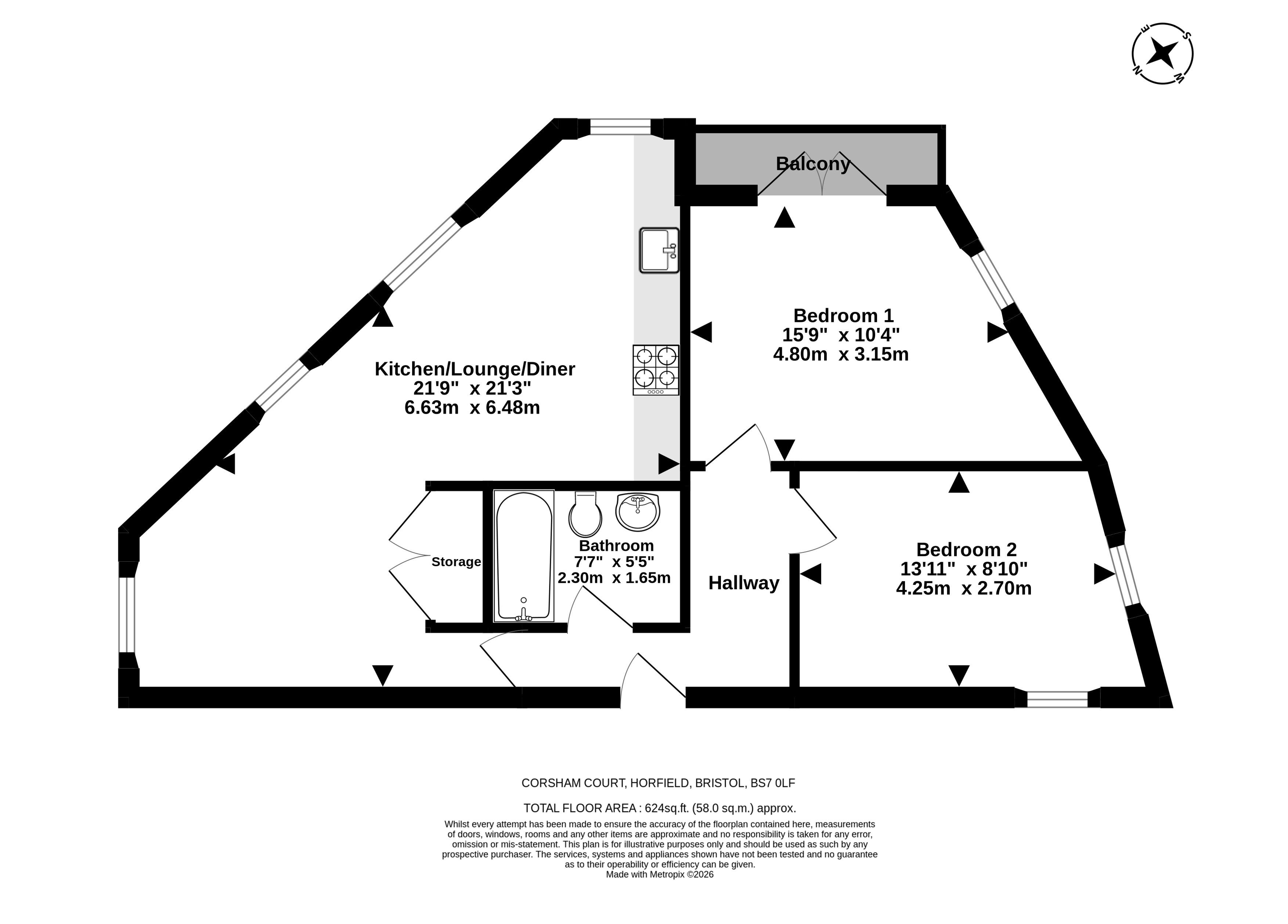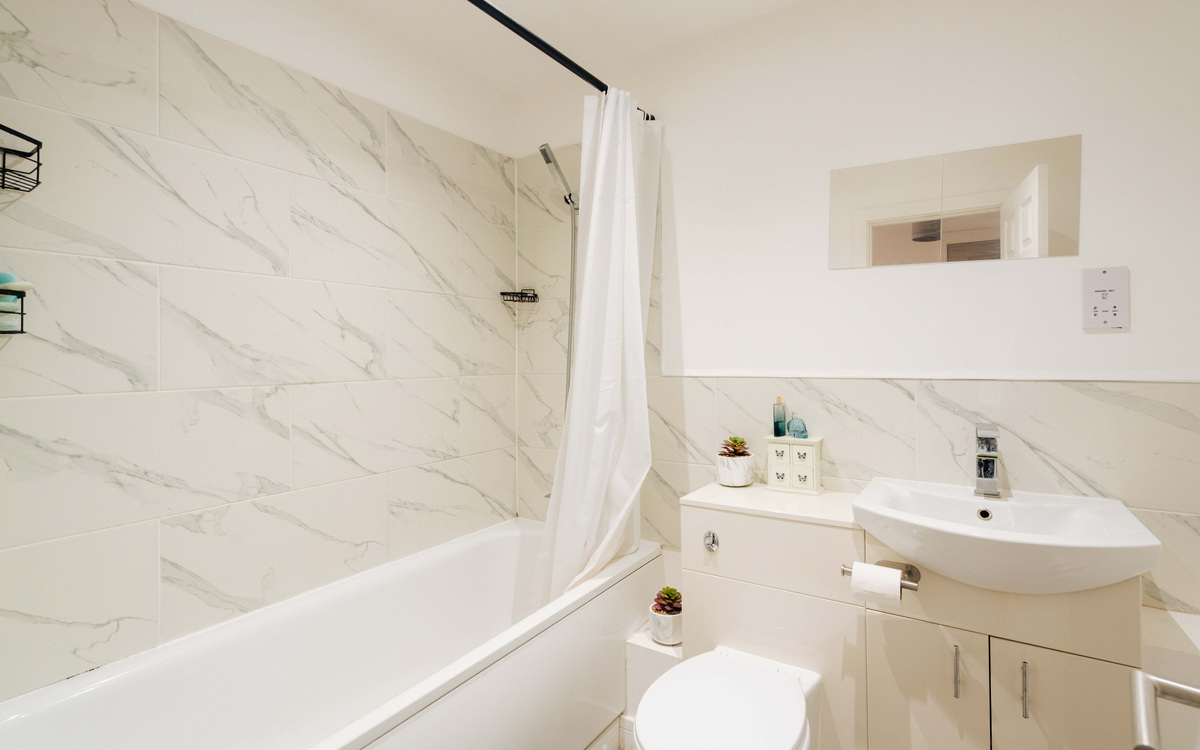 Finished to a high standard, the flat offers a bright and modern interior that feels immediately welcoming, with a well-proportioned layout designed for contemporary living. The open plan lounge/kitchen/diner prioritises light and space, ideal for both relaxing and entertaining, while the kitchen provides excellent workspace with a sleek and practical finish. There are two double bedrooms, with the larger of the two benefiting from a South-facing balcony. The three-piece bathroom suite completes the accommodation.